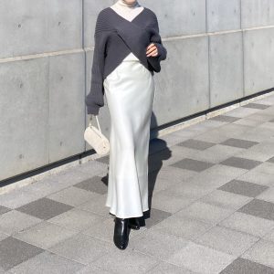 ユニクロの白タートルが名脇役。サテンスカートを冬から楽しむ大…