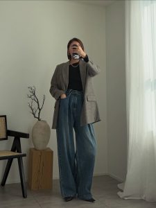 【GU】セットアップで賢く着回す。身長を問わずに決まるグレー×…