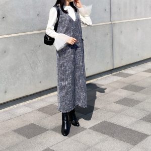 一枚でこなれる。ツイード素材のジャンパースカートを主役にした…