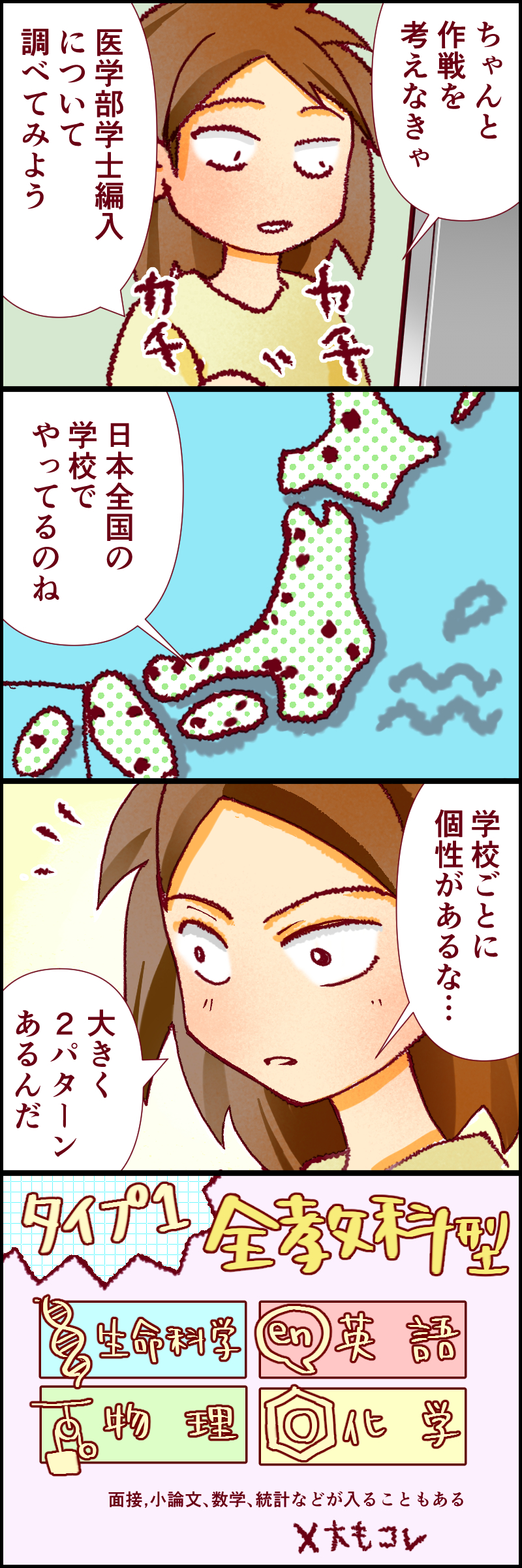 敵(試験)の正体を知らなければ、勝負に勝てるはずがない!そう気づいたさつきは、日本全国の医学部編入制度を片っ端から調べはじめました。