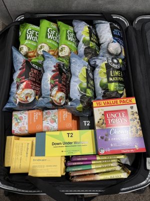 スーツケースはほぼカラできて、ポテチ詰めて帰るマダム!