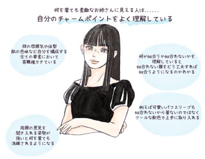 人からどう見られるのか。そして、自分の容姿やスタイルに見合う服とはどのようなものなのか。という“俯瞰力”が備わっています。