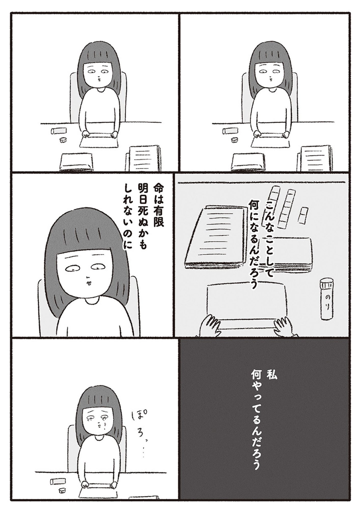 【無気力】「明日死ぬかもしれないのに…私何やってるんだろう」見えない未来を想像したら…【会社がツライ なりたい自分を見つけるまで #10】 2025.06.02 LIFE 試し読みブラック企業マンガ試し読み仕事の流儀マンガ会社がツライ なりたい自分を見つけるまで 試し読み ▶ebookjapan『会社がツライ なりたい自分を見つけるまで』 ▶30日間無料▶ Amazonの読み放題をチェック! 【99円で2カ月間】 Audible が無制限で聴ける! ▶楽天KOBO 初回購入金額のポイント最大70倍! スポンサーリンク 次のページへ >> 1 2 3 4 【注目の記事】 1番対策が難しかった…!頬のたるみやほうれい線につながるNG食事習慣最後のひとつ 冬の寒さに負けない!そろそろ準備したい中綿アウター×【ユニクロ】バズりデニムの着こなし【40代の毎日コーデ】 【ユニクロ】カシミヤタッチニットで魅せる!旬のブラウンを効かせた洗練肩掛けテク【40代の毎日コーデ】 東大生が注意喚起!「鵜呑みにしてはいけない」SNSで「でたらめの受験情報」を発信する人の特徴とは 「東大受験が簡単!?」な難関私立高出身者。天才たちの受験勉強、その驚きの実態とは この記事は OTONA SALONE1 スポンサーリンク スポンサーリンク 【人気の関連記事】 40代。もう私、いつ死んだっていい気がするけど | あした死ぬには、#1 突然の病気。更年期障害。取れない疲労、お金の不安、これからの人生の迷い……。40代がぶち当たる「壁」をあまりにもリアルに描き出し、熱く静かな共感をさらった雁須磨子さ… 人前では「完璧な夫婦」を演じる夫。普段は私を無視してるって、誰も知らない【女40代はおそろしい#11】 40歳・フリーデザイナーの丸山ふさ子。 夫との攻防戦の末、「共働きだけど夫のほうが家事育児多め」という関係にやっとたどり着く。バリキャリ会社員のまい、起業家のかお… 年齢、たまに忘れてない?アラフォーあるあるが「共感しかない」と話題 「最近、若い頃と比べて何かが違う……」そんなモヤモヤを抱えているアラフォーのみなさん、必見!イラストレーターのRingoman(@ringo_fashion)さんがインスタグラムに投稿…