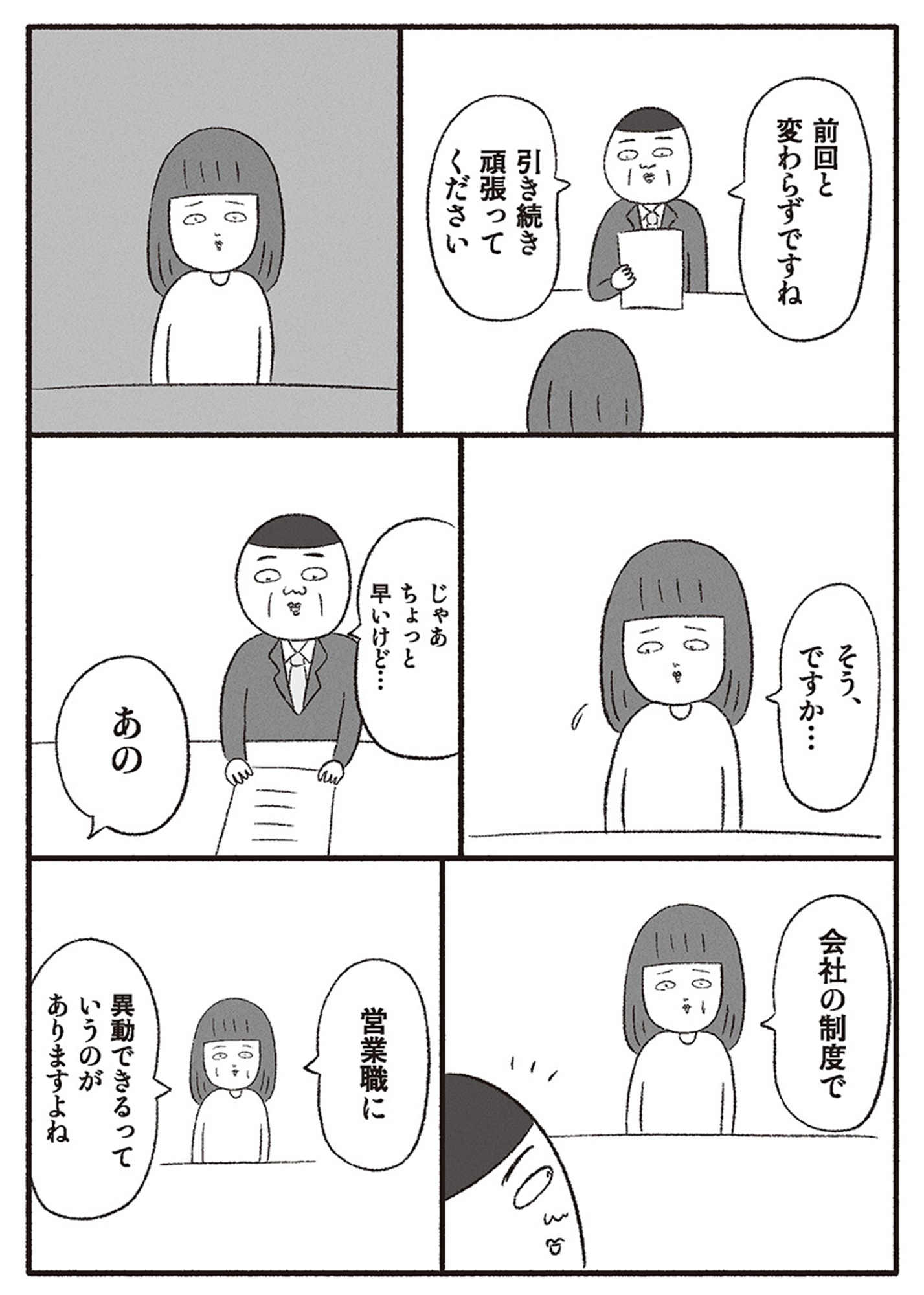 【評価面談】「社内異動制度」はあってないようなもの!? 上司に推薦をお願いするも…【会社がツライ なりたい自分を見つけるまで #8】 2025.05.31 LIFE マンガブラック企業マンガ試し読み試し読み会社がツライ なりたい自分を見つけるまで 試し読み仕事の流儀 ▶ebookjapan『会社がツライ なりたい自分を見つけるまで』 ▶30日間無料▶ Amazonの読み放題をチェック! 【99円で2カ月間】 Audible が無制限で聴ける! ▶楽天KOBO 初回購入金額のポイント最大70倍! スポンサーリンク 次のページへ >> 1 2 3 4 5 【注目の記事】 1番対策が難しかった…!頬のたるみやほうれい線につながるNG食事習慣最後のひとつ 冬の寒さに負けない!そろそろ準備したい中綿アウター×【ユニクロ】バズりデニムの着こなし【40代の毎日コーデ】 【ユニクロ】カシミヤタッチニットで魅せる!旬のブラウンを効かせた洗練肩掛けテク【40代の毎日コーデ】 東大生が注意喚起!「鵜呑みにしてはいけない」SNSで「でたらめの受験情報」を発信する人の特徴とは 「東大受験が簡単!?」な難関私立高出身者。天才たちの受験勉強、その驚きの実態とは この記事は OTONA SALONE1 スポンサーリンク スポンサーリンク 【人気の関連記事】 40代。もう私、いつ死んだっていい気がするけど | あした死ぬには、#1 突然の病気。更年期障害。取れない疲労、お金の不安、これからの人生の迷い……。40代がぶち当たる「壁」をあまりにもリアルに描き出し、熱く静かな共感をさらった雁須磨子さ… 人前では「完璧な夫婦」を演じる夫。普段は私を無視してるって、誰も知らない【女40代はおそろしい#11】 40歳・フリーデザイナーの丸山ふさ子。 夫との攻防戦の末、「共働きだけど夫のほうが家事育児多め」という関係にやっとたどり着く。バリキャリ会社員のまい、起業家のかお… 年齢、たまに忘れてない?アラフォーあるあるが「共感しかない」と話題 「最近、若い頃と比べて何かが違う……」そんなモヤモヤを抱えているアラフォーのみなさん、必見!イラストレーターのRingoman(@ringo_fashion)さんがインスタグラムに投稿…