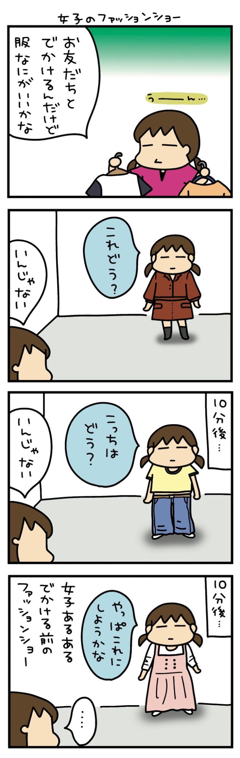 お出かけ前の女子あるある!「ファッションショー」 を開催すると、その10分後…【うちはおっぺけ 3姉妹といっしょ 10 #3】 2025.05.30 LIFE 試し読み子育てマンガ松本ぷりっつマンガ試し読みうちはおっぺけ 3姉妹といっしょ10 試し読み ▶Renta!『うちはおっぺけ 3姉妹といっしょ』 ▶30日間無料▶ Amazonの読み放題をチェック! 【99円で2カ月間】 Audible が無制限で聴ける! ▶楽天KOBO 初回購入金額のポイント最大70倍! 1冊まるごと無料!【dブック】をチェック スポンサーリンク 次のページへ >> 1 2 3 【注目の記事】 1番対策が難しかった…!頬のたるみやほうれい線につながるNG食事習慣最後のひとつ 冬の寒さに負けない!そろそろ準備したい中綿アウター×【ユニクロ】バズりデニムの着こなし【40代の毎日コーデ】 【ユニクロ】カシミヤタッチニットで魅せる!旬のブラウンを効かせた洗練肩掛けテク【40代の毎日コーデ】 東大生が注意喚起!「鵜呑みにしてはいけない」SNSで「でたらめの受験情報」を発信する人の特徴とは 「東大受験が簡単!?」な難関私立高出身者。天才たちの受験勉強、その驚きの実態とは この記事は OTONA SALONE1 スポンサーリンク スポンサーリンク 【人気の関連記事】 40代。もう私、いつ死んだっていい気がするけど | あした死ぬには、#1 突然の病気。更年期障害。取れない疲労、お金の不安、これからの人生の迷い……。40代がぶち当たる「壁」をあまりにもリアルに描き出し、熱く静かな共感をさらった雁須磨子さ… 人前では「完璧な夫婦」を演じる夫。普段は私を無視してるって、誰も知らない【女40代はおそろしい#11】 40歳・フリーデザイナーの丸山ふさ子。 夫との攻防戦の末、「共働きだけど夫のほうが家事育児多め」という関係にやっとたどり着く。バリキャリ会社員のまい、起業家のかお… 年齢、たまに忘れてない?アラフォーあるあるが「共感しかない」と話題 「最近、若い頃と比べて何かが違う……」そんなモヤモヤを抱えているアラフォーのみなさん、必見!イラストレーターのRingoman(@ringo_fashion)さんがインスタグラムに投稿…