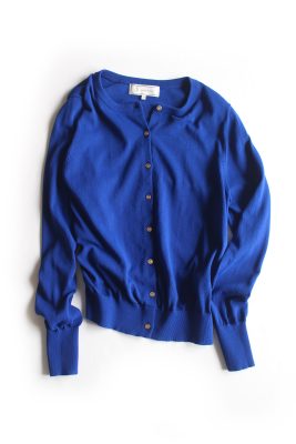 カーディガンは袖を通して着るよりもファサッと肩から掛けると洒落て見えます。同じ服でも印象が変わるので、きちんと見せたいときは袖を通して、少し着崩してもOKな場面では肩掛けにする、というようにぜひ使い分けてみてください。