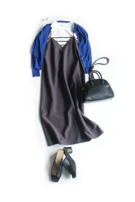 遮熱のキャミワンピースまであるとは驚きました。雑誌の着回し企画では、よくワンピースを使います。トップス+ボトムスのコーデとは服の面積が変わって印象が変わるからです。毎日のコーデにマンネリを感じている人は、キャミワンピースを投入すると、持っているTシャツやブラウスがガラリと違う印象になるのでおすすめです。
