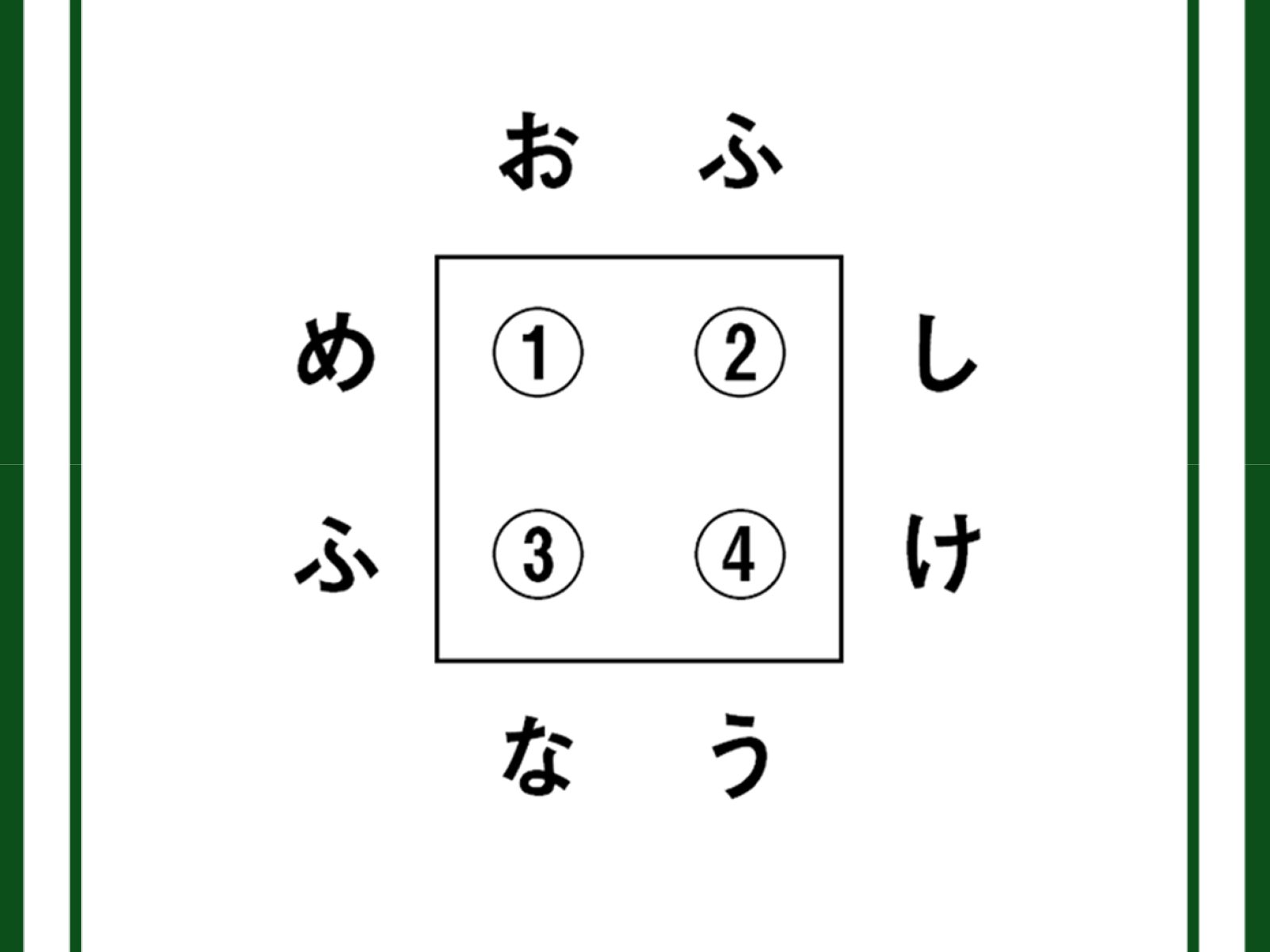①②③④の文字をつなげるとできる言葉は?