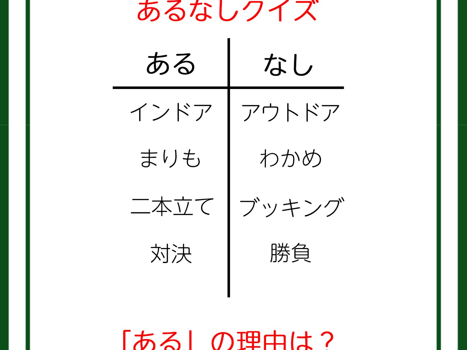 あるなしクイズです!「インドアにあってアウトドアにない」のはなんだろう?ある側の一字一字に注目です【難易度LV3.・中辛】
