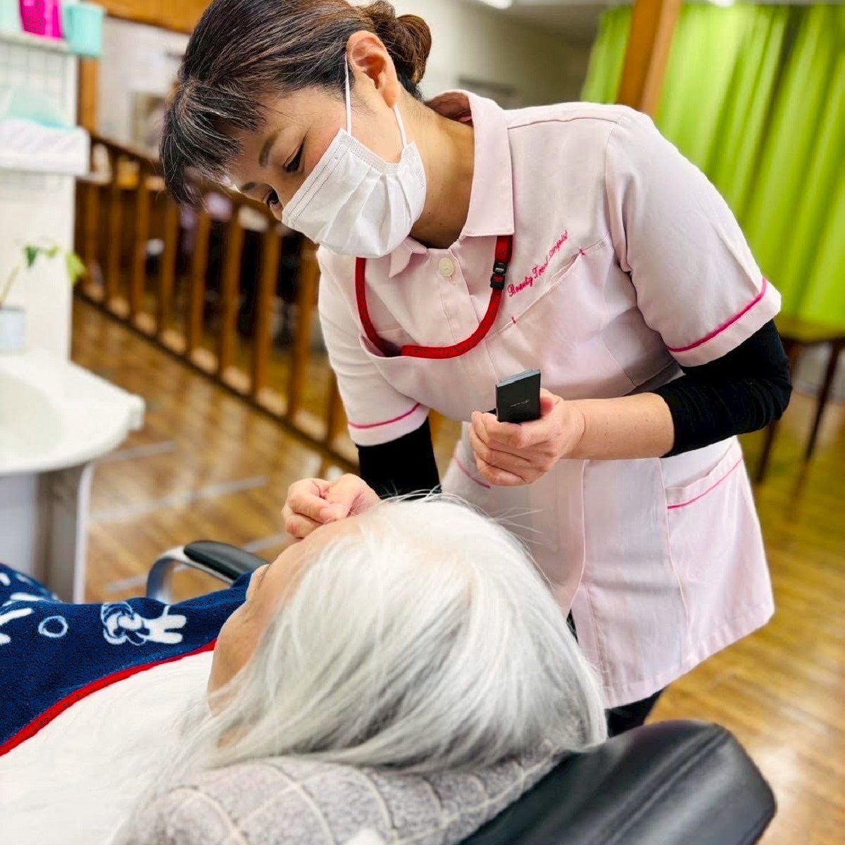 逆に私も、ご家族のサポートに感謝していることが多いんです。ある方は、デイサービスの前日に「明日はエステの日だね」と娘さんが声をかけてくれるので、当日の施術もスムーズ。メイクをして帰宅すると、「綺麗にしてもらえてよかったね~」と一緒に喜んでいるそう。セラピーの効果が、ご本人だけでなくご家族にも伝わっているのをうれしく感じます。
