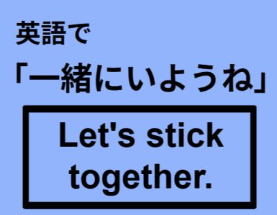 Let’s stick together = 一緒にいよう、離れずにいよう、協力しよう