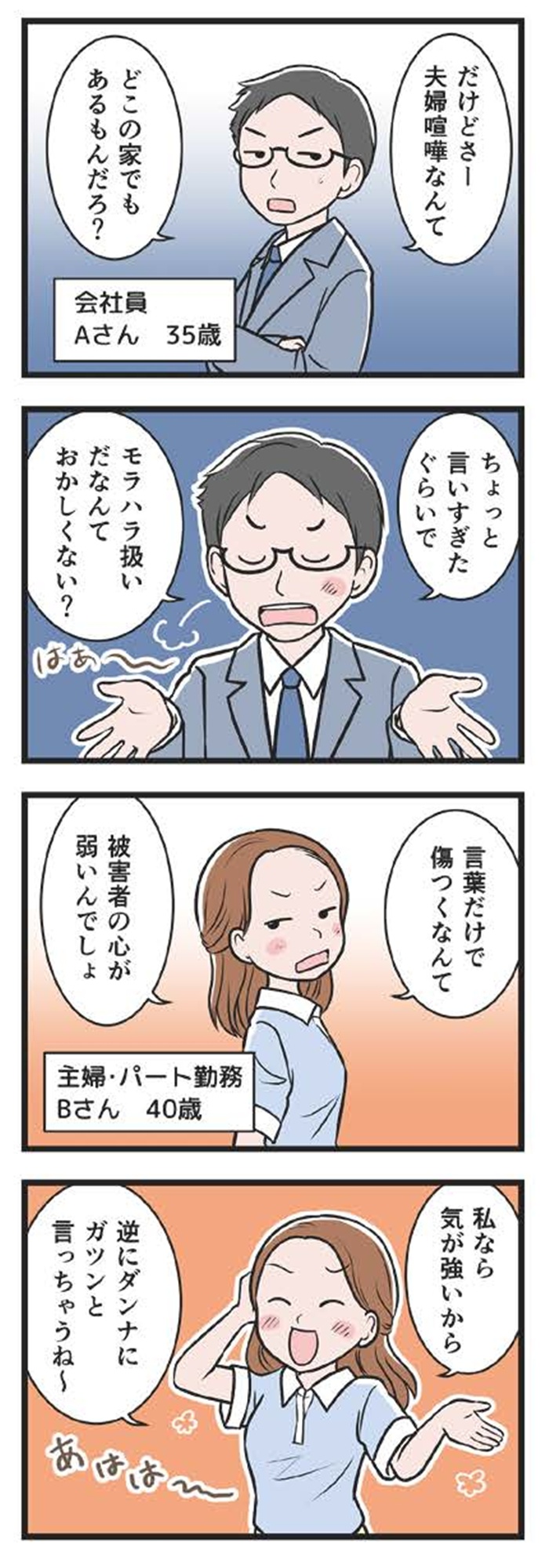 暴力を振るわなくてもモラハラはれっきとしたDV! その本質とは…?【わたしがモラハラ夫を捨てて離婚するまで #1】 2025.06.20 LIFE マンガ試し読みモラハラマンガわたしがモラハラ夫を捨てて離婚するまで 試し読み離婚 ▶Renta!『わたしがモラハラ夫を捨てて離婚するまで 』 ▶30日間無料▶ Amazonの読み放題をチェック! 【99円で2カ月間】 Audible が無制限で聴ける! ▶楽天KOBO 初回購入金額のポイント最大70倍! 1冊まるごと無料!【dブック】をチェック スポンサーリンク 次のページへ >> 1 2 3 4 【注目の記事】 1番対策が難しかった…!頬のたるみやほうれい線につながるNG食事習慣最後のひとつ 冬の寒さに負けない!そろそろ準備したい中綿アウター×【ユニクロ】バズりデニムの着こなし【40代の毎日コーデ】 【ユニクロ】カシミヤタッチニットで魅せる!旬のブラウンを効かせた洗練肩掛けテク【40代の毎日コーデ】 東大生が注意喚起!「鵜呑みにしてはいけない」SNSで「でたらめの受験情報」を発信する人の特徴とは 「東大受験が簡単!?」な難関私立高出身者。天才たちの受験勉強、その驚きの実態とは この記事は OTONA SALONE1 スポンサーリンク スポンサーリンク 【人気の関連記事】 40代。もう私、いつ死んだっていい気がするけど | あした死ぬには、#1 突然の病気。更年期障害。取れない疲労、お金の不安、これからの人生の迷い……。40代がぶち当たる「壁」をあまりにもリアルに描き出し、熱く静かな共感をさらった雁須磨子さ… 人前では「完璧な夫婦」を演じる夫。普段は私を無視してるって、誰も知らない【女40代はおそろしい#11】 40歳・フリーデザイナーの丸山ふさ子。 夫との攻防戦の末、「共働きだけど夫のほうが家事育児多め」という関係にやっとたどり着く。バリキャリ会社員のまい、起業家のかお… 年齢、たまに忘れてない?アラフォーあるあるが「共感しかない」と話題 「最近、若い頃と比べて何かが違う……」そんなモヤモヤを抱えているアラフォーのみなさん、必見!イラストレーターのRingoman(@ringo_fashion)さんがインスタグラムに投稿…
