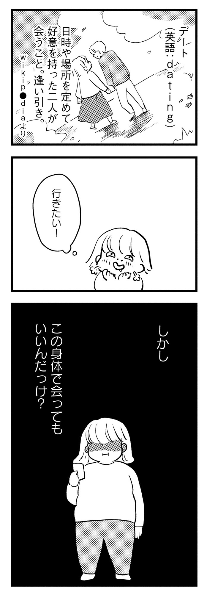 「好きなことは食べること」体型を気にせず育った著者・やじまりさんは、気になる男性との約束をきっかけに人生初のダイエットを決意する。