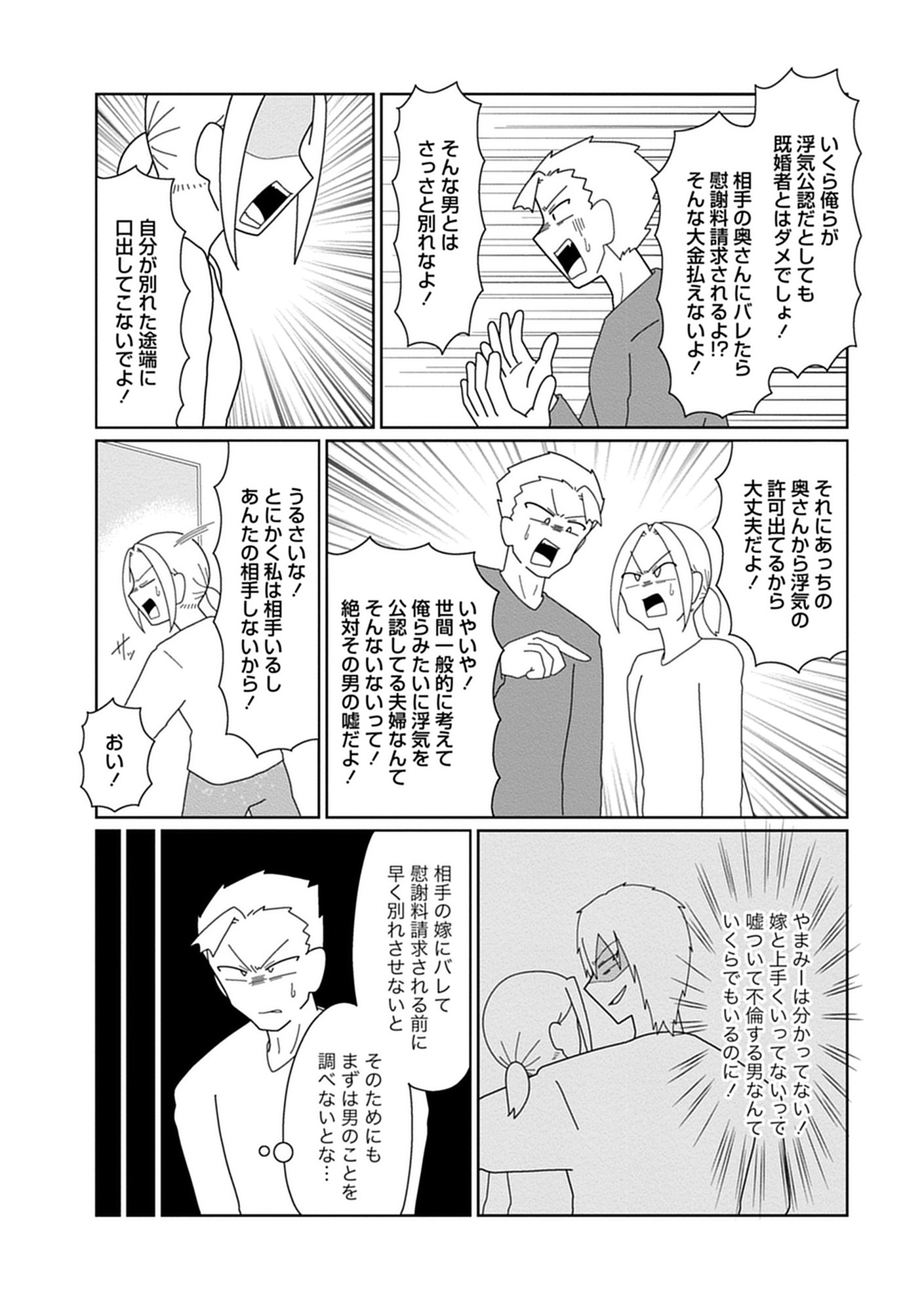 浮気公認だけど既婚者はNG! 妻と浮気相手を別れさせる方法を模索【浮気公認夫婦です。私たちの歪んだ結婚生活 #11】 2025.06.24 LOVE 浮気夫婦関係浮気公認夫婦です。私たちの歪んだ結婚生活 試し読みマンガ試し読みマンガ試し読み ▶Renta!『浮気公認夫婦です。私たちの歪んだ結婚生活』 ▶30日間無料▶ Amazonの読み放題をチェック! 【99円で2カ月間】 Audible が無制限で聴ける! ▶楽天KOBO 初回購入金額のポイント最大70倍! 1冊まるごと無料!【dブック】をチェック スポンサーリンク 次のページへ >> 1 2 3 4 【注目の記事】 1番対策が難しかった…!頬のたるみやほうれい線につながるNG食事習慣最後のひとつ 冬の寒さに負けない!そろそろ準備したい中綿アウター×【ユニクロ】バズりデニムの着こなし【40代の毎日コーデ】 【ユニクロ】カシミヤタッチニットで魅せる!旬のブラウンを効かせた洗練肩掛けテク【40代の毎日コーデ】 東大生が注意喚起!「鵜呑みにしてはいけない」SNSで「でたらめの受験情報」を発信する人の特徴とは 「東大受験が簡単!?」な難関私立高出身者。天才たちの受験勉強、その驚きの実態とは この記事は OTONA SALONE1 スポンサーリンク スポンサーリンク 【人気の関連記事】 【男性心理】浮気に走る本当の理由は何だった!?浮気しやすいタイプも解説 働き盛りの30~40代の男性たち。仕事にも余裕が出てきて、浮気をする時間もお金も持っているので、さまざまな女性と交流するチャンスもゴロゴロ。前回の浮気されやすい女性… 【なぜどく#7 45歳・A子さん編】地方は独身男が少ない!40代でやっと気づいたこと 【なぜ彼女は独身なのか?40代独女の本音 ♯7】アラフォー独身のイラストレーターNobbyさんが、絶賛婚活中の編集長・アサミといっしょに、婚活中の独身女性と「私たちはな… 【なぜどく#8】42歳独女が月額10万のセレブ婚活サロンに登録した結果… 【なぜ彼女は独身なの?40代独女の本音 ♯8】アラフォー独身のイラストレーターNobbyさんが、絶賛婚活中の編集長・アサミといっしょに、婚活中の独身女性と「私たちはなぜ…