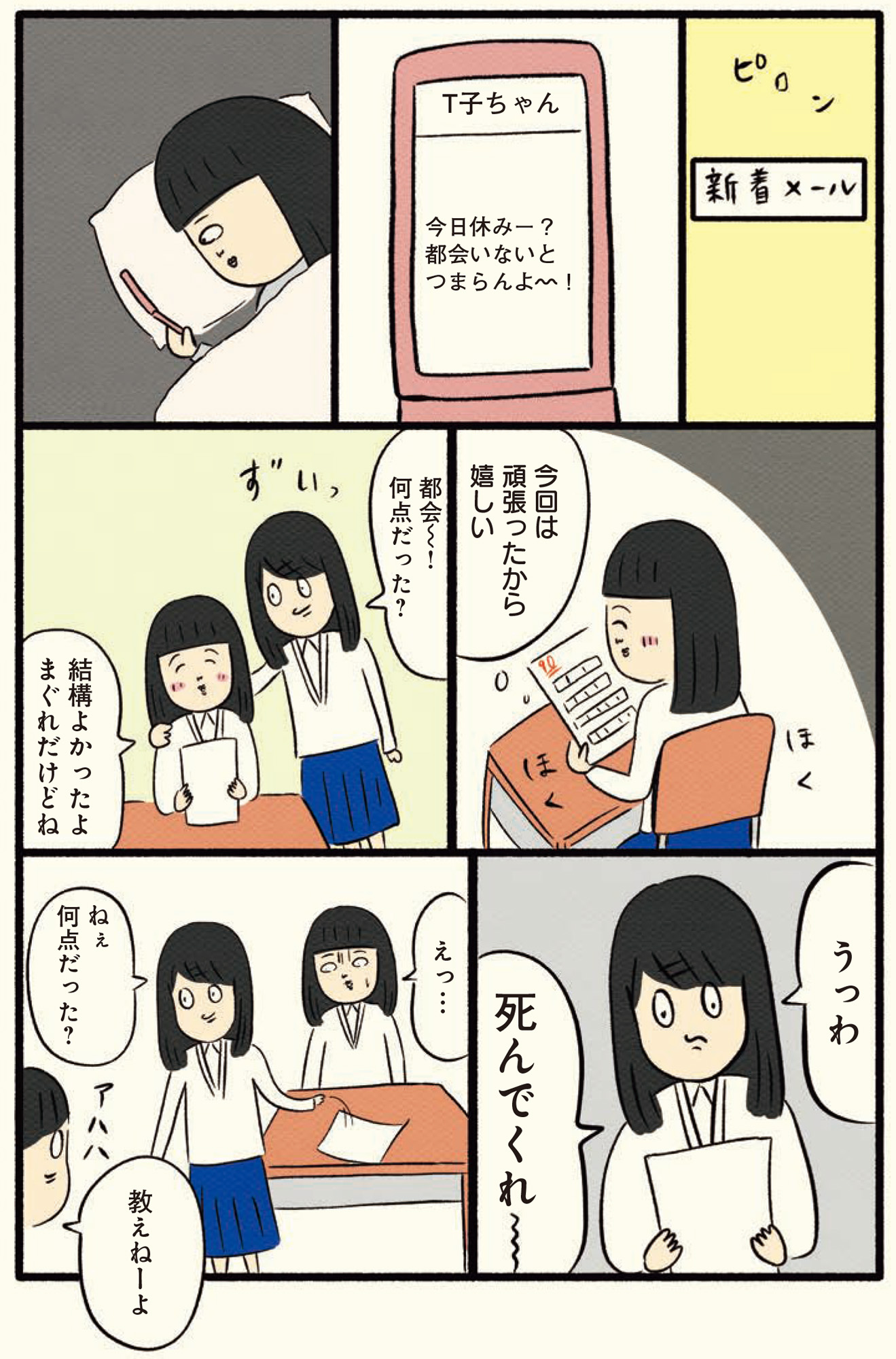 仲が良くても言っていいことと悪いことがある! 冗談半分でキツいことを言う友達についていけない…【ボッチだった6ヶ月間 (とその後) #20】 2025.07.14 LIFE ボッチだった6ヶ月間 (とその後) 試し読みマンガ試し読みマンガ人間関係試し読み不登校 ▶Renta!『ボッチだった6ヶ月間 (とその後)』 ▶30日間無料▶ Amazonの読み放題をチェック! 【99円で2カ月間】 Audible が無制限で聴ける! ▶楽天KOBO 初回購入金額のポイント最大70倍! スポンサーリンク 次のページへ >> 1 2 3 4 【注目の記事】 1番対策が難しかった…!頬のたるみやほうれい線につながるNG食事習慣最後のひとつ 冬の寒さに負けない!そろそろ準備したい中綿アウター×【ユニクロ】バズりデニムの着こなし【40代の毎日コーデ】 【ユニクロ】カシミヤタッチニットで魅せる!旬のブラウンを効かせた洗練肩掛けテク【40代の毎日コーデ】 東大生が注意喚起!「鵜呑みにしてはいけない」SNSで「でたらめの受験情報」を発信する人の特徴とは 「東大受験が簡単!?」な難関私立高出身者。天才たちの受験勉強、その驚きの実態とは この記事は OTONA SALONE3 スポンサーリンク スポンサーリンク 【人気の関連記事】 40代。もう私、いつ死んだっていい気がするけど | あした死ぬには、#1 突然の病気。更年期障害。取れない疲労、お金の不安、これからの人生の迷い……。40代がぶち当たる「壁」をあまりにもリアルに描き出し、熱く静かな共感をさらった雁須磨子さ… 人前では「完璧な夫婦」を演じる夫。普段は私を無視してるって、誰も知らない【女40代はおそろしい#11】 40歳・フリーデザイナーの丸山ふさ子。 夫との攻防戦の末、「共働きだけど夫のほうが家事育児多め」という関係にやっとたどり着く。バリキャリ会社員のまい、起業家のかお… 年齢、たまに忘れてない?アラフォーあるあるが「共感しかない」と話題 「最近、若い頃と比べて何かが違う……」そんなモヤモヤを抱えているアラフォーのみなさん、必見!イラストレーターのRingoman(@ringo_fashion)さんがインスタグラムに投稿…