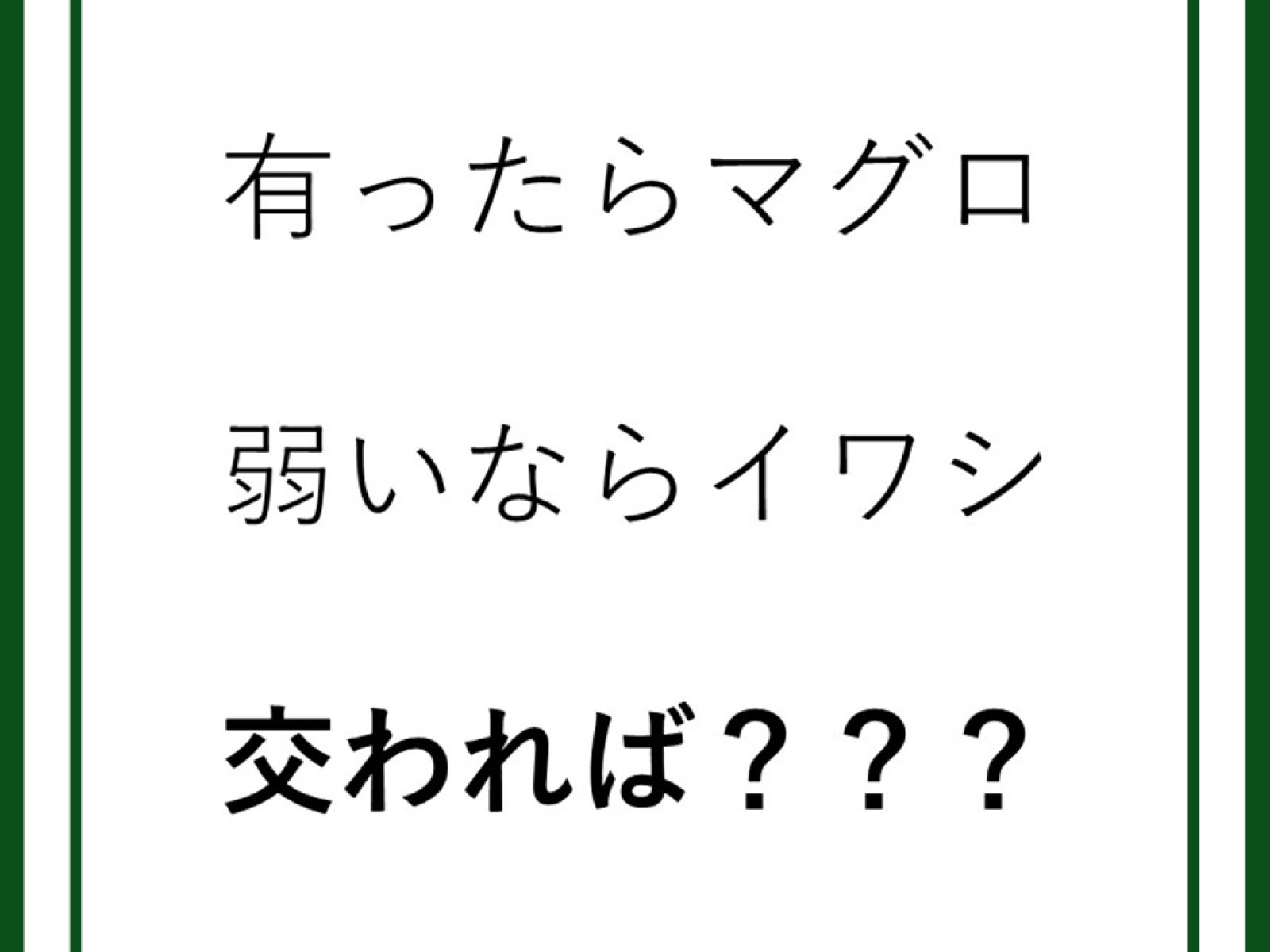 クイズです!「有ったらマグロ。では、交わればなに?」例字を踏まえて考えよう【難易度LV2.・甘口】