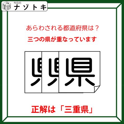 3枚の「県」が重なっています。つまり「三」つ「重」なっている「県」ということですね。お、漢字の部分だけ読んでみましょう!