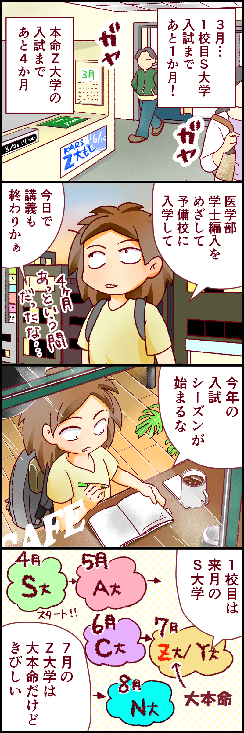 いよいよ本番シーズンが迫ってきました。前回、「問題の意味さえ分からない」という状態だったさつきですが、仕事の昼休みも返上するほどの熱意で勉強をかさね、「給料ンヶ月分」が一瞬で飛ぶほど授業料の高かった予備校も終わり、肝心の仕上がり具合は、一体どうなのでしょうか…?