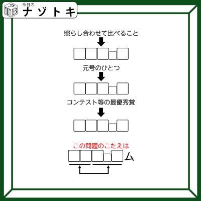 クイズです!「照らし合わせて比べること、とは?」ヒントは、同じ文字!答えはどんな言葉?【難易度LV3.・中辛】