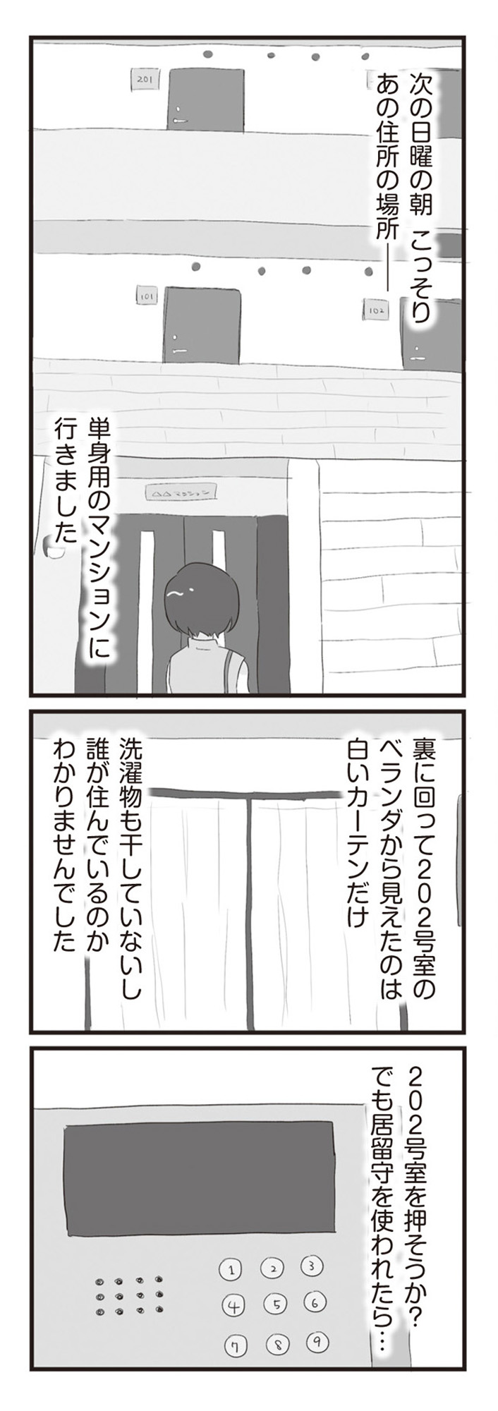 旦那が出てきたのは浮気相手の部屋? 恐る恐るインターホンを押すと、若い女の声が…【旦那の浮気相手とLINE友達になってみた1 #4】