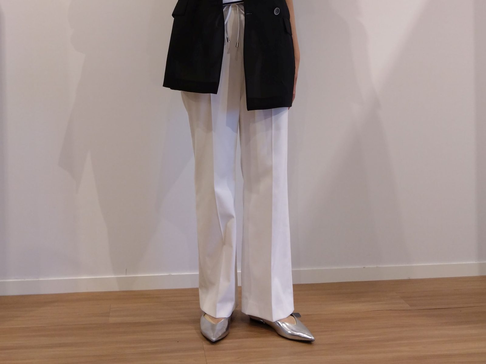 この白パンツはウエストがゴムでラクな穿き心地なのに、美脚効果がものすごいんです。膝のしぼり位置を高めにした計算し尽されたシルエットと、樹脂加工を施した洗濯しても消えにくいセンタープレスのおかげで、「超絶ラクなのに美脚に見える」超名品。はっきり言って買わない理由が見つかりませんでした。