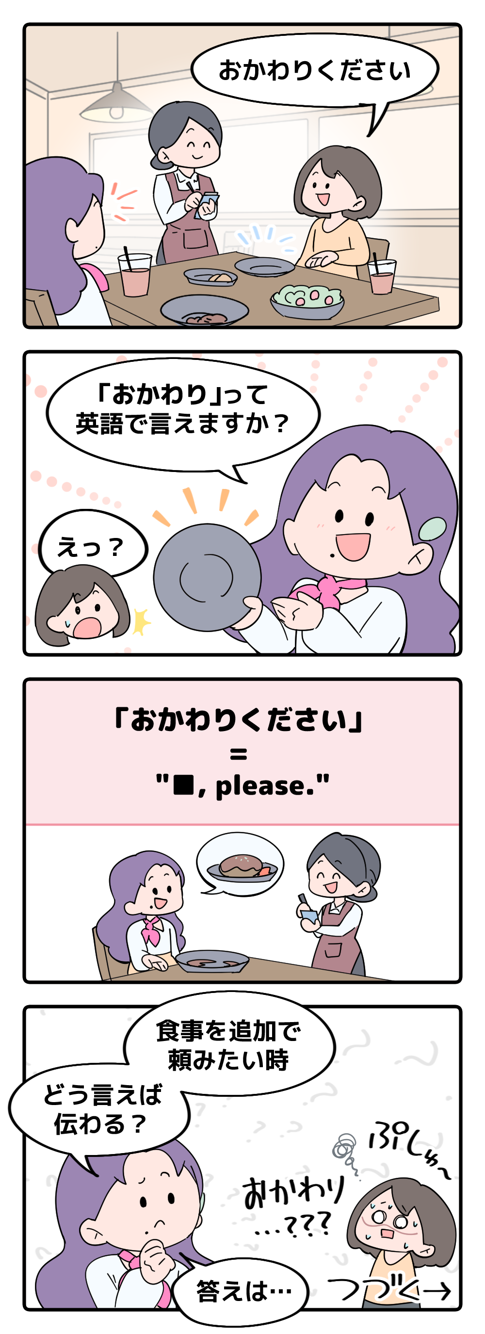 マンガでわかる!英語で「おかわりください」はなんて言う?