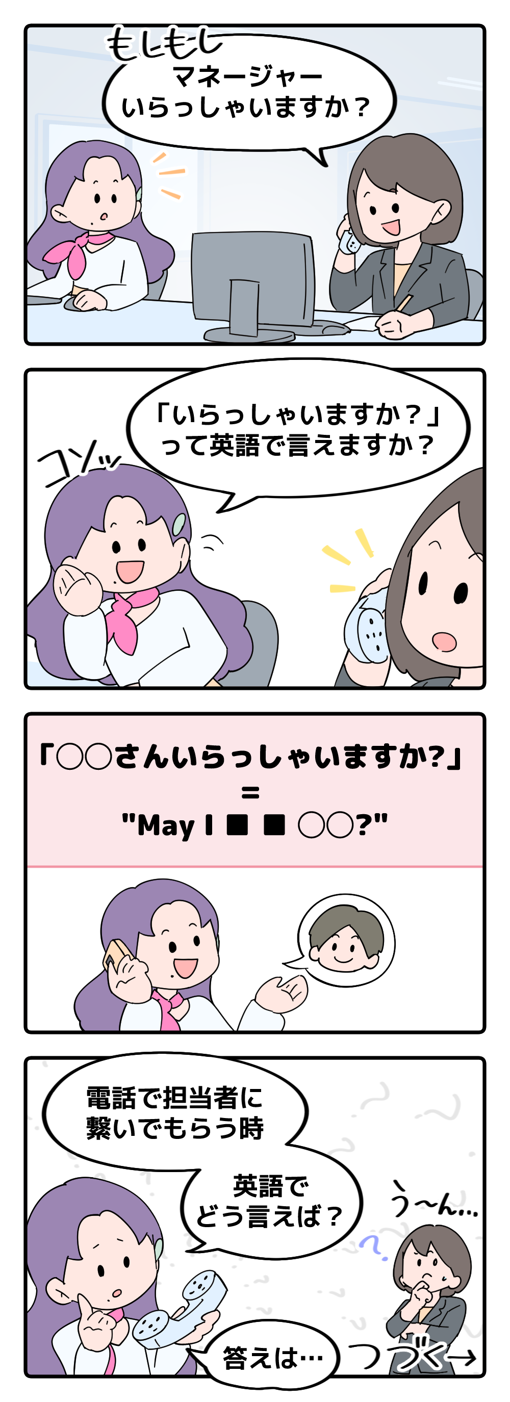 マンガでわかる!英語で「〇〇さんいらっしゃいますか?」はなんて言う?