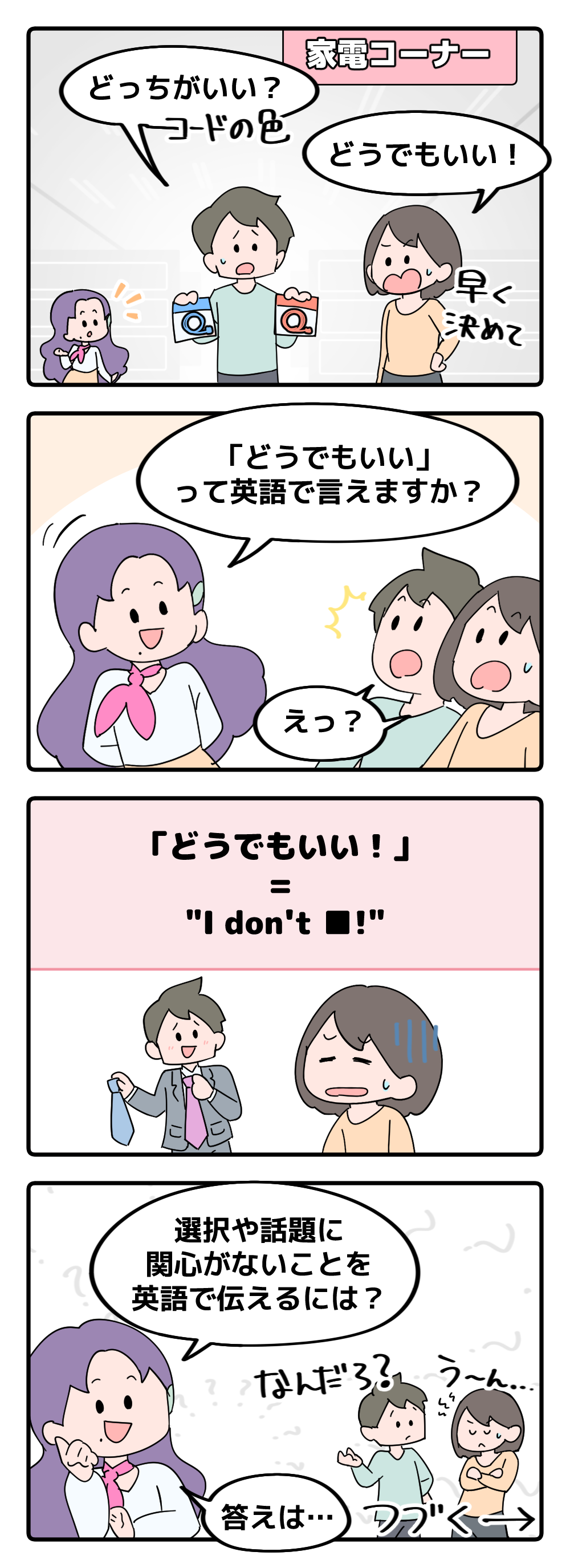 マンガでわかる!英語で「どうでもいい!」はなんて言う?