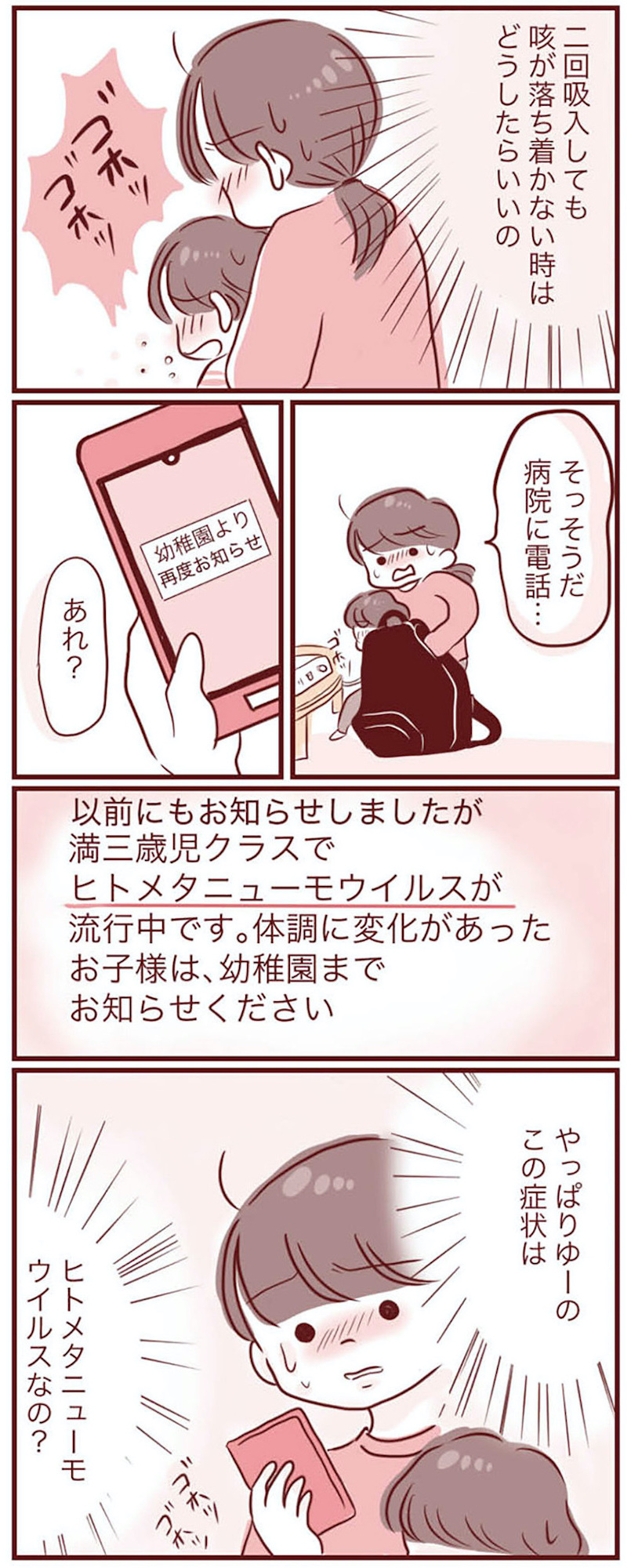 「もう1度、受診すべき?」医師の指示に従うにも、息子の咳が止まらない【母の勘を信じて 次男が入院するまでの記録 #5】 2025.08.21 LIFE 試し読み育児マンガ試し読み母の勘を信じて 次男が入院するまでの記録 試し読みマンガ ▶Renta!『母の勘を信じて 次男が入院するまでの記録』 ▶30日間無料▶ Amazonの読み放題をチェック! 【99円で2カ月間】 Audible が無制限で聴ける! ▶楽天KOBO 初回購入金額のポイント最大70倍! スポンサーリンク 次のページへ >> 1 2 3 【注目の記事】 「浮気は犯罪じゃないだろ!」18歳年上の夫に裏切られ、妻がようやく探しはじめた“心の自由”とは 「更年期にはもう鉄、葉酸はいらない…なんて思わないで!」更年期以降に不足しがちな「意外な栄養素」とは?【医師に聞く】 大注目中の成分「ラクトフェリン」入りヨーグルト、50代が2週間食べてみたら「何が変わった?」内側から元気に「なんとなくの不調」を改善 妻の入院より自分の夕飯が心配!? 48歳「ジコチュウ夫」から息子を守るため、苦渋の決断とは【離婚と親権】 【ユニクロ・GU】で大成功。ワントーンに「ひとクセ」効かせた洗練スタイル【40代の毎日コーデ】 この記事は OTONA SALONE1 スポンサーリンク スポンサーリンク 【人気の関連記事】 40代。もう私、いつ死んだっていい気がするけど | あした死ぬには、#1 突然の病気。更年期障害。取れない疲労、お金の不安、これからの人生の迷い……。40代がぶち当たる「壁」をあまりにもリアルに描き出し、熱く静かな共感をさらった雁須磨子さ… 人前では「完璧な夫婦」を演じる夫。普段は私を無視してるって、誰も知らない【女40代はおそろしい#11】 40歳・フリーデザイナーの丸山ふさ子。 夫との攻防戦の末、「共働きだけど夫のほうが家事育児多め」という関係にやっとたどり着く。バリキャリ会社員のまい、起業家のかお… 年齢、たまに忘れてない?アラフォーあるあるが「共感しかない」と話題 「最近、若い頃と比べて何かが違う……」そんなモヤモヤを抱えているアラフォーのみなさん、必見!イラストレーターのRingoman(@ringo_fashion)さんがインスタグラムに投稿…