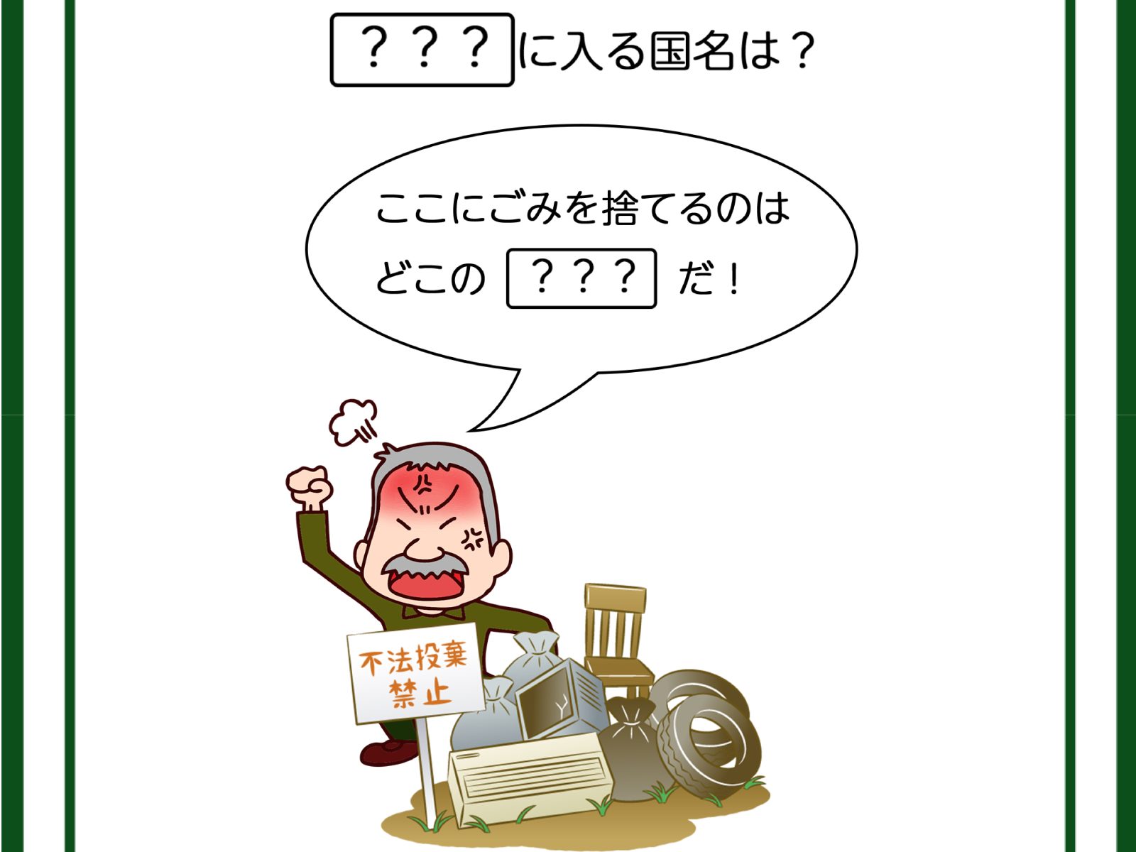 クイズです!「ハテナにはいる国名は?」怒ったおじいさんが放つ言葉に考えを巡らせてみましょう【難易度LV2.・甘口】