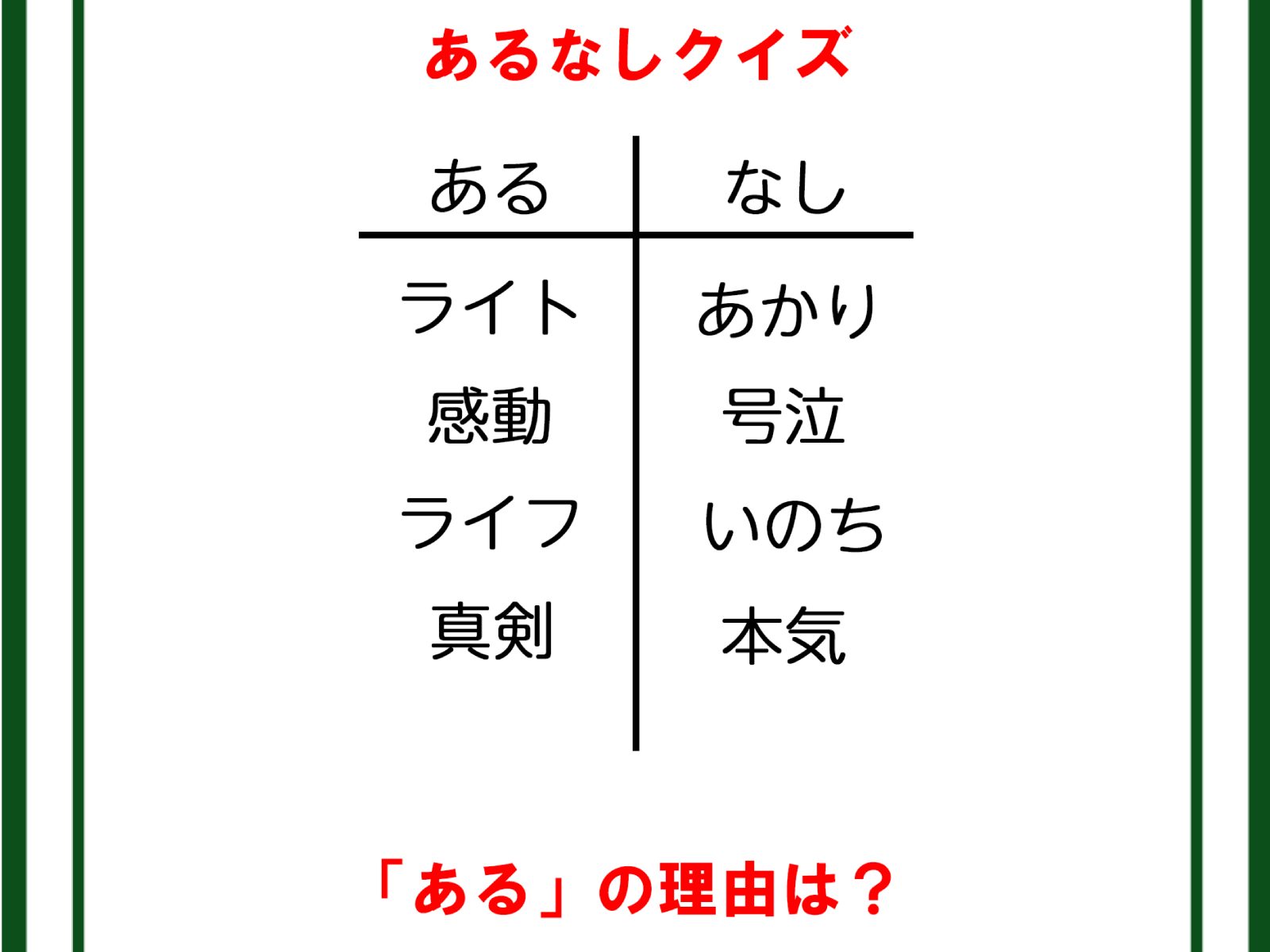 あるなしクイズです!「ライト・感動・ライフ・真剣にある」って、何がある?順番も大事です【難易度LV4.・辛口】