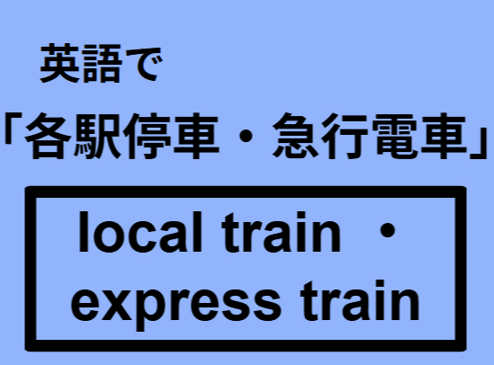 全ての駅に停まる各駅停車は、local train、主要な駅にだけ停まる急行電車は express trainと言います。