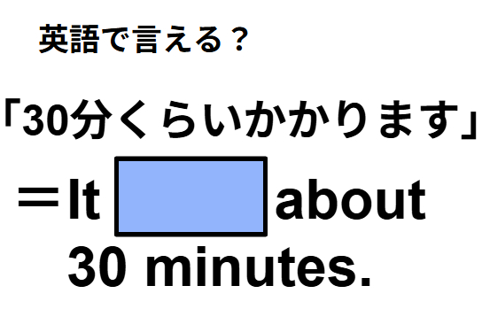 「It takes about (所要時間)+(交通手段).」で、「その(交通手段)で(所要時間)くらいです。」となります。