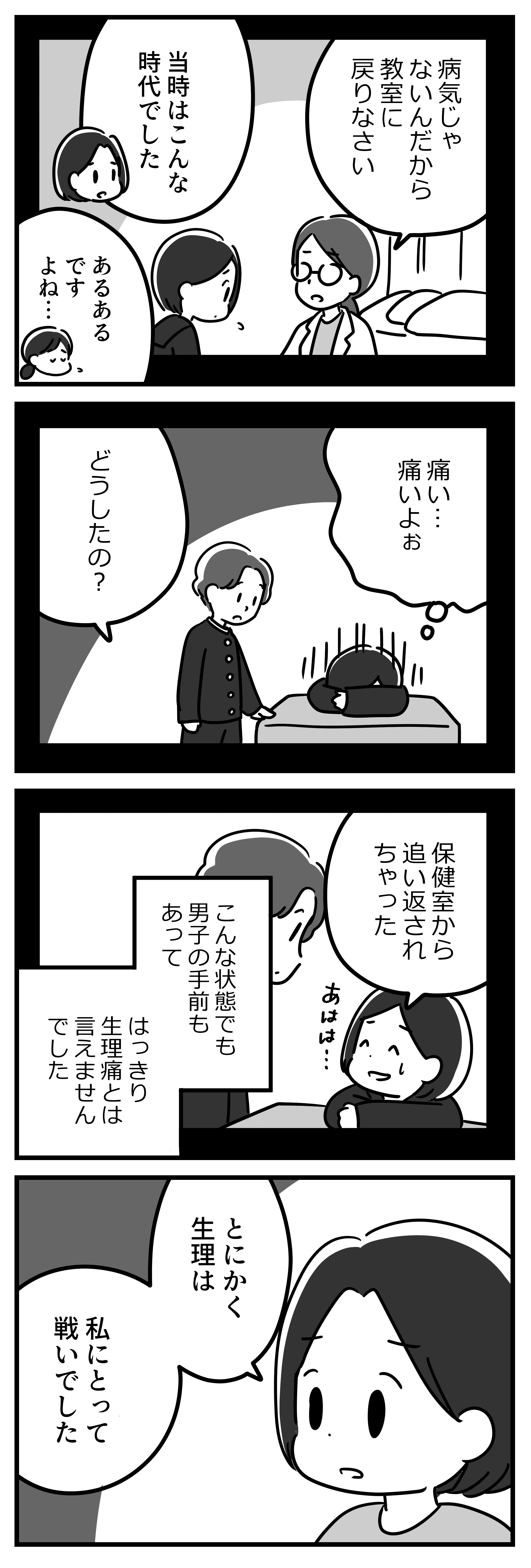 呪いとしか言いようがない。学校で「生理は病気じゃないから」と言われ、その後「出産は病気じゃないんだから」とも言われた