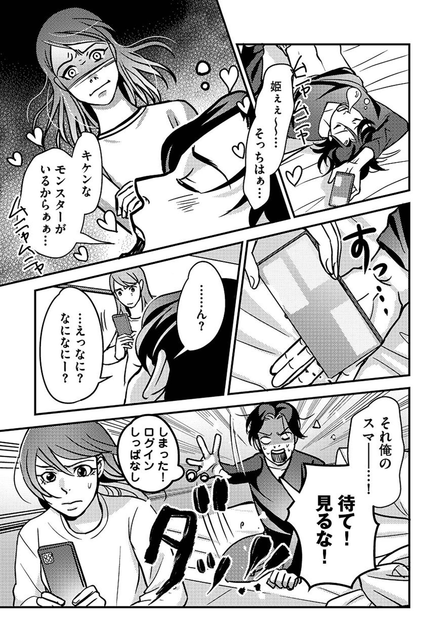 結婚後、スマホのソーシャルゲームにどっぷりハマってしまった夫。家でも仕事中もスマホを離さずゲームに没頭する日々。さらには子どもの出産祝いや入学祝をを課金に使い込み、ゲーム内浮気まで…。家族そっちのけで自分勝手な言動を繰り返すダメ夫に制裁を!