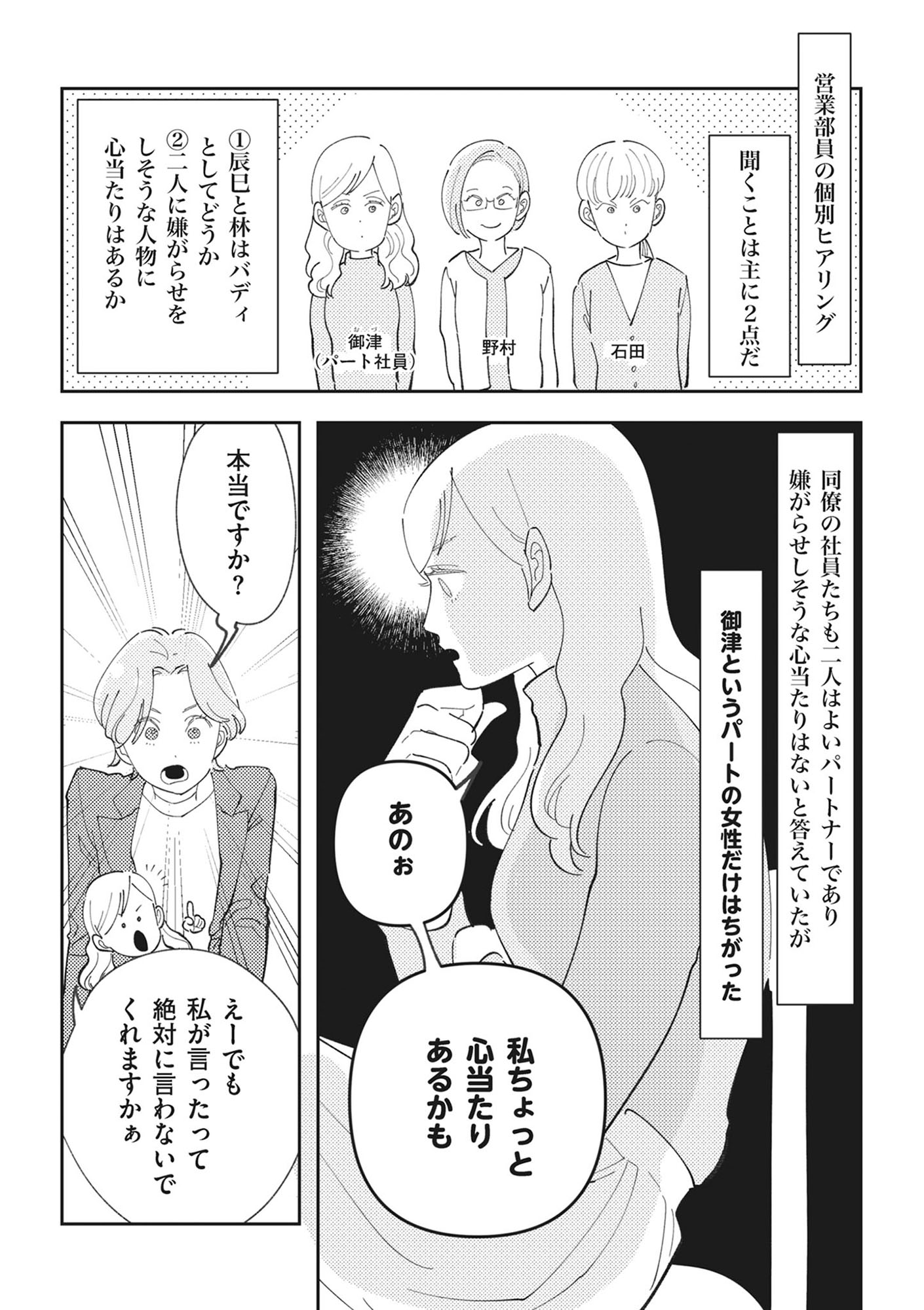 30代の社労士・真実(まみ)の元に舞い込んできた新規の相談は、お得意先からの紹介案件。「やり手課長と部下の女性が不倫をしているという噂が社内に広まり困っている」というものだった。