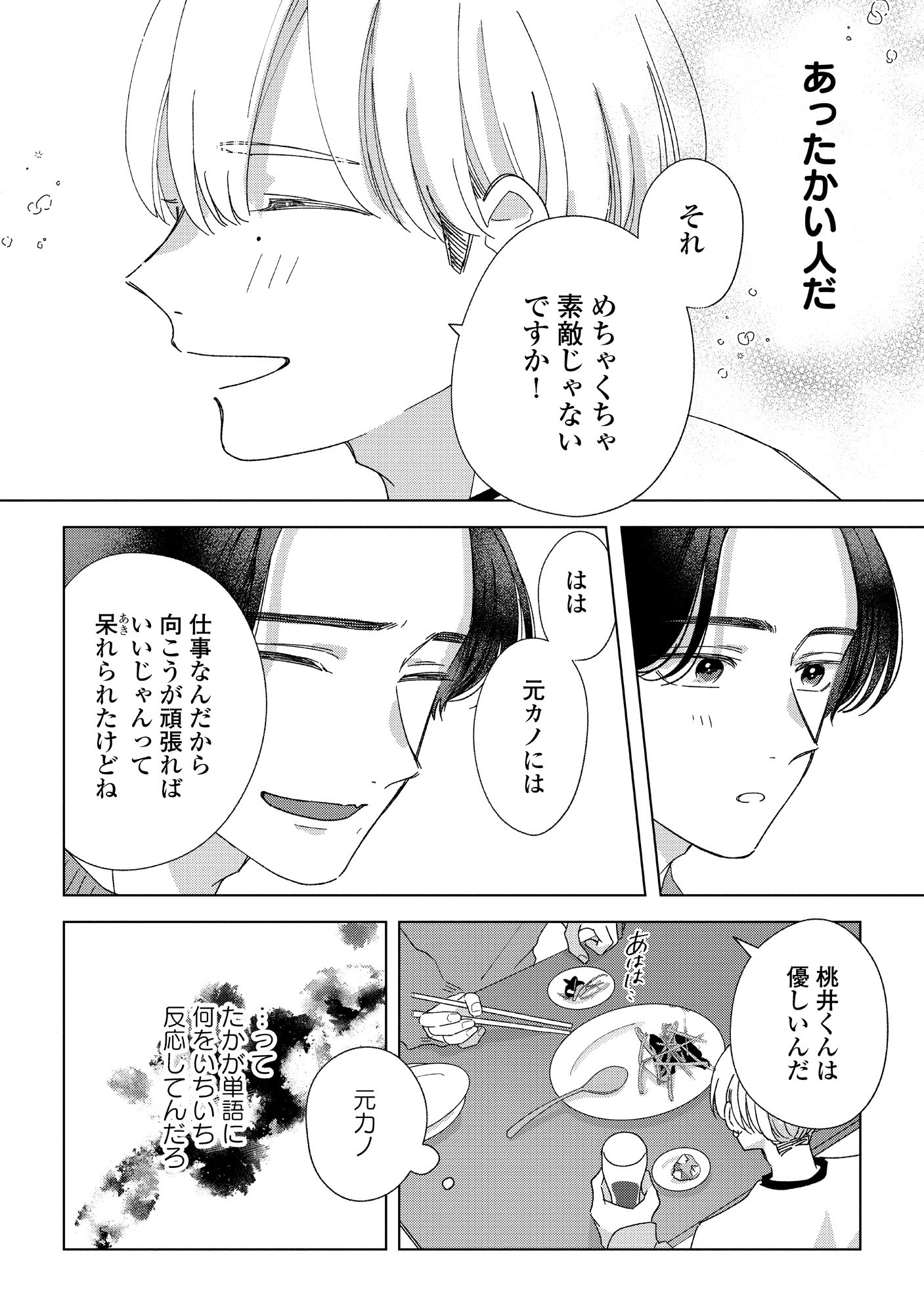 楽しい食事のはずが、気になる彼の“元カノ”発言に心がざわつく【モモイロ・ハレーション(1) #14】
