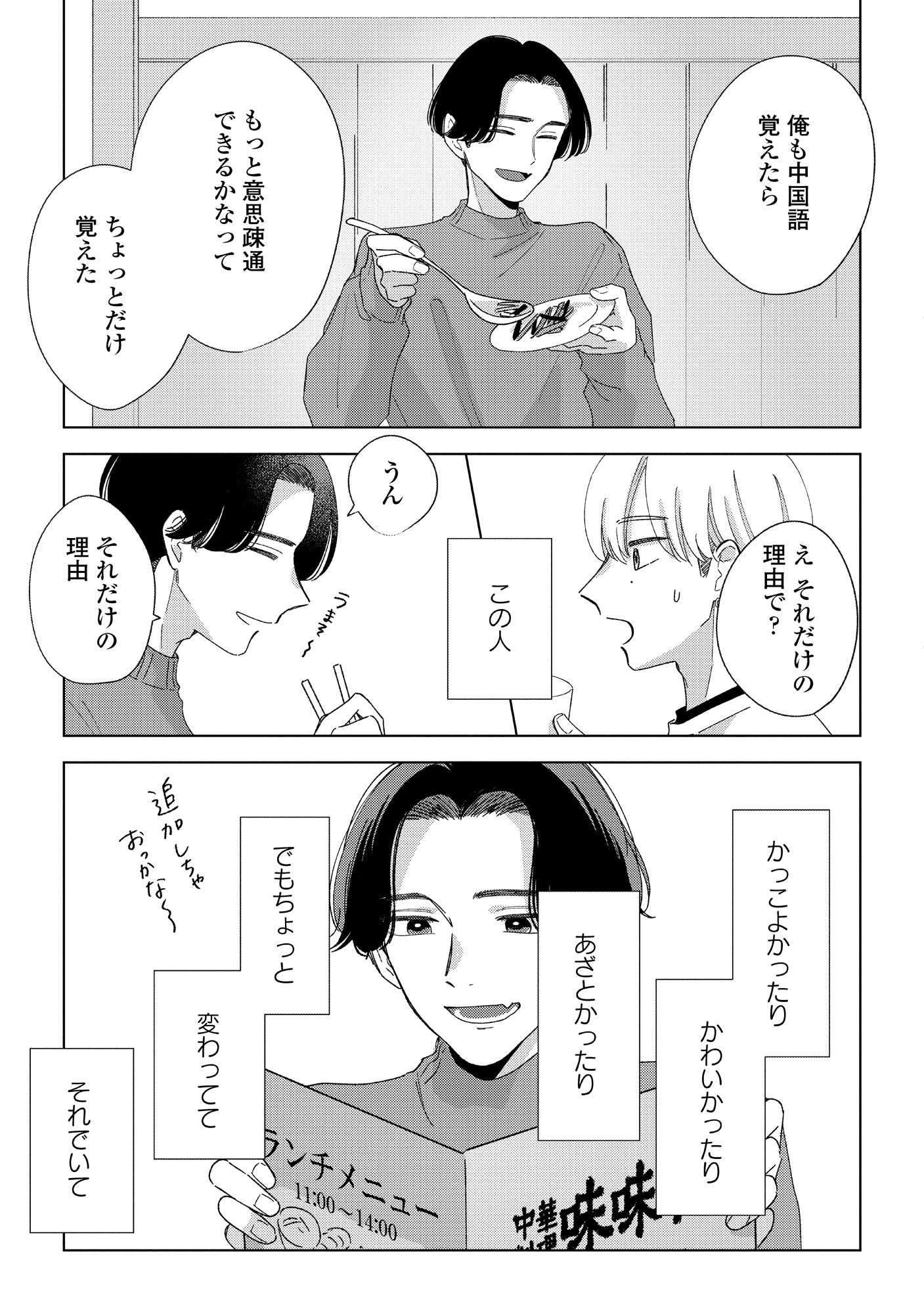 楽しい食事のはずが、気になる彼の“元カノ”発言に心がざわつく【モモイロ・ハレーション(1) #14】