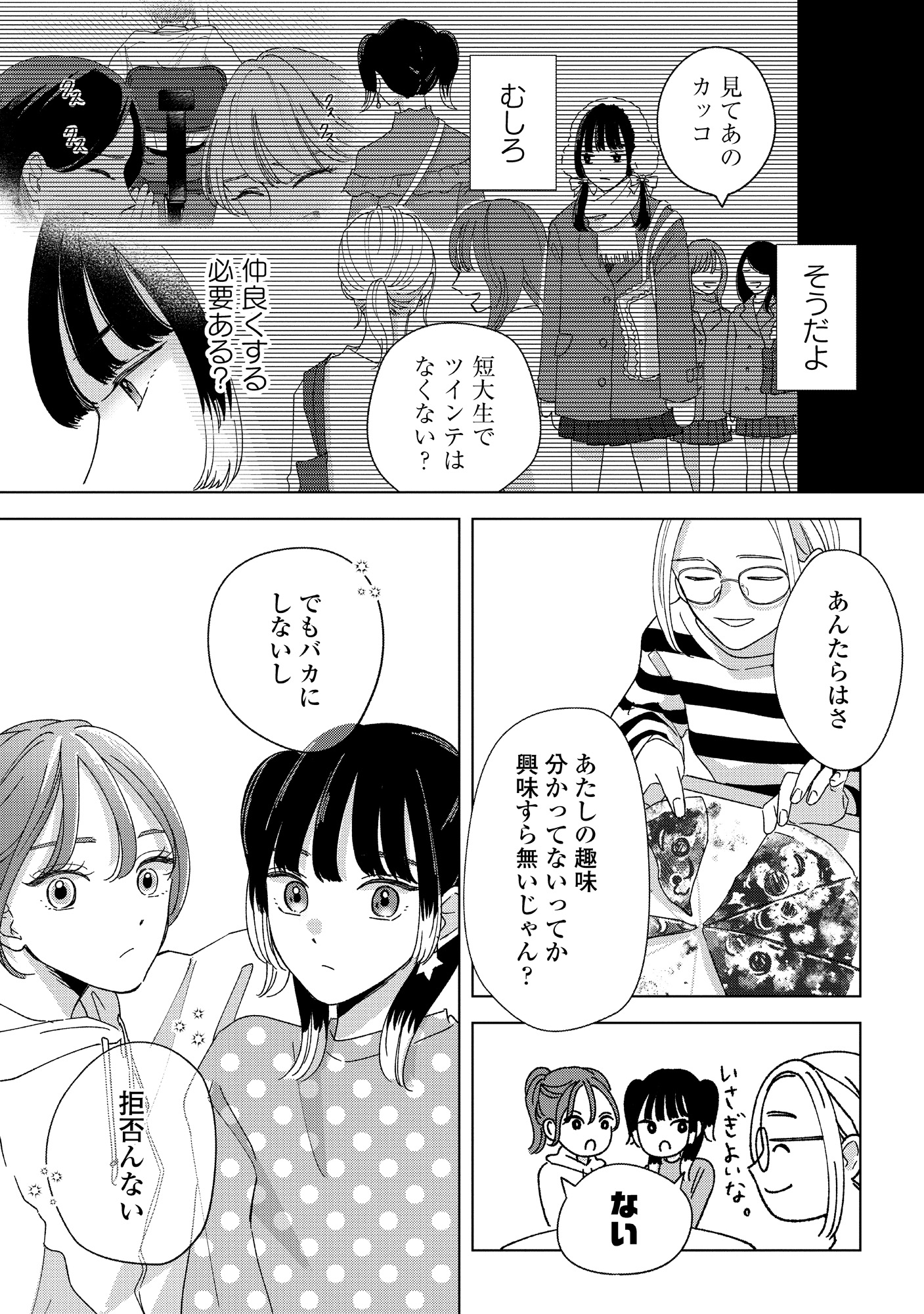 誰から構わず仲良くしたいわけじゃない。気心知れた友人と過ごす時間は心地よい【モモイロ・ハレーション(1) #19】 2025.09.28 LIFE マンガオタク試し読みモモイロ・ハレーション(1~2巻) 試し読みマンガ試し読み ▶Renta!『モモイロ・ハレーション1』 ▶30日間無料▶ Amazonの読み放題をチェック! 【99円で2カ月間】 Audible が無制限で聴ける! ▶楽天KOBO 初回購入金額のポイント最大70倍! スポンサーリンク 次のページへ >> 1 2 3 【注目の記事】 1番対策が難しかった…!頬のたるみやほうれい線につながるNG食事習慣最後のひとつ 冬の寒さに負けない!そろそろ準備したい中綿アウター×【ユニクロ】バズりデニムの着こなし【40代の毎日コーデ】 【ユニクロ】カシミヤタッチニットで魅せる!旬のブラウンを効かせた洗練肩掛けテク【40代の毎日コーデ】 東大生が注意喚起!「鵜呑みにしてはいけない」SNSで「でたらめの受験情報」を発信する人の特徴とは 「東大受験が簡単!?」な難関私立高出身者。天才たちの受験勉強、その驚きの実態とは この記事は OTONA SALONE4 スポンサーリンク スポンサーリンク 【人気の関連記事】 40代。もう私、いつ死んだっていい気がするけど | あした死ぬには、#1 突然の病気。更年期障害。取れない疲労、お金の不安、これからの人生の迷い……。40代がぶち当たる「壁」をあまりにもリアルに描き出し、熱く静かな共感をさらった雁須磨子さ… 人前では「完璧な夫婦」を演じる夫。普段は私を無視してるって、誰も知らない【女40代はおそろしい#11】 40歳・フリーデザイナーの丸山ふさ子。 夫との攻防戦の末、「共働きだけど夫のほうが家事育児多め」という関係にやっとたどり着く。バリキャリ会社員のまい、起業家のかお… 年齢、たまに忘れてない?アラフォーあるあるが「共感しかない」と話題 「最近、若い頃と比べて何かが違う……」そんなモヤモヤを抱えているアラフォーのみなさん、必見!イラストレーターのRingoman(@ringo_fashion)さんがインスタグラムに投稿…