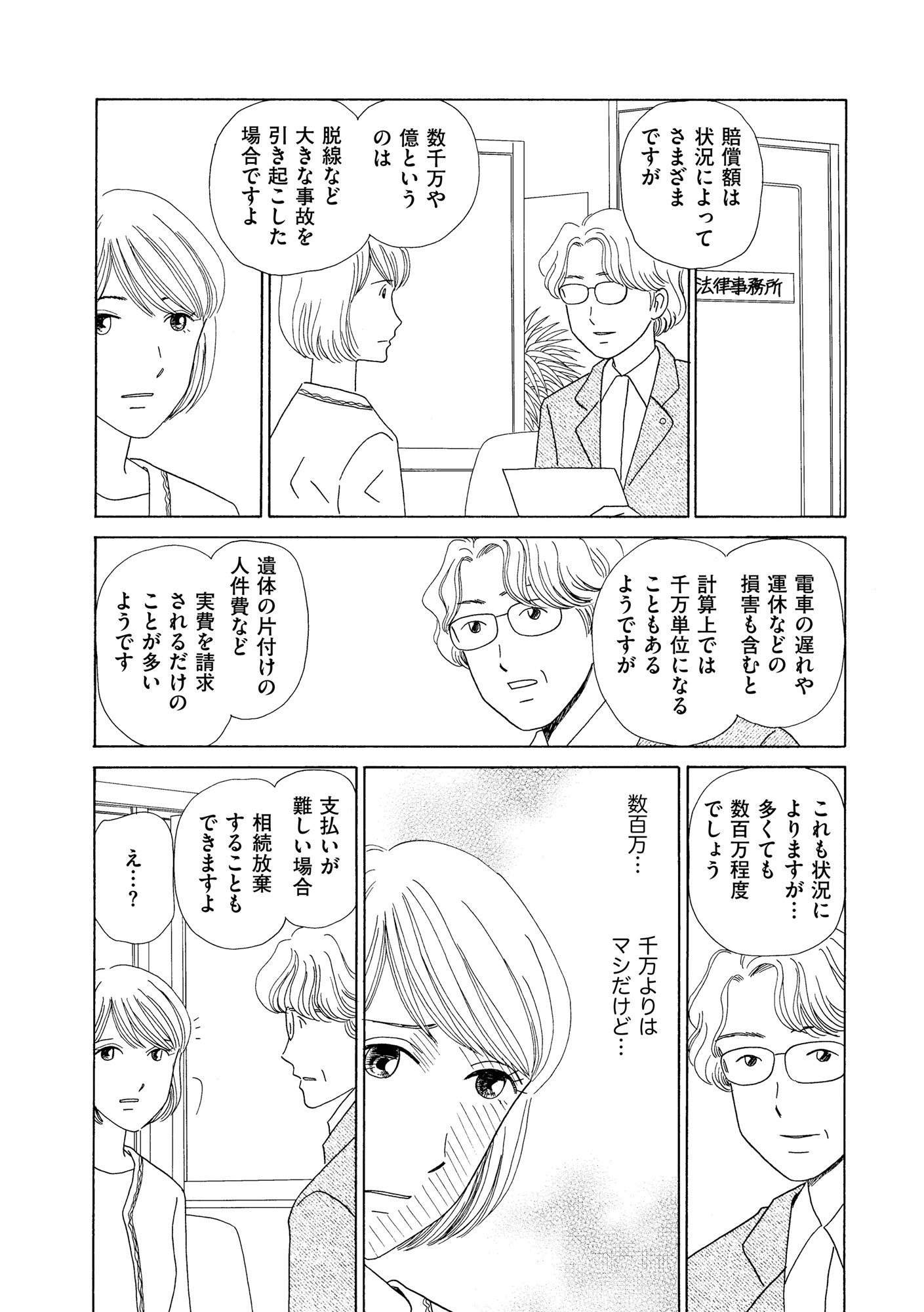 鉄道自●の賠償金は相続放棄をすれば免れる…でも持ち家は手放したくない【その汚仕事OUT! 輸入品を国産といって売るのは不正では!? #30】 2025.09.09 LIFE 試し読みマンガその汚仕事OUT! 試し読みマンガ試し読み 人も食品もみんな汚い! 主婦が迷い込んだ腐った人間の巣窟!! 読者の本当にあった職場・身内・ママ友間のトラブルをコミカライズする傑作選全5話!! ※本記事はまるいぴよこ 著の書籍『その汚仕事OUT! 輸入品を国産といって売るのは不正では!?』から一部抜粋・編集しました。 ▶Renta!『その汚仕事OUT! 輸入品を国産といって売るのは不正では!?』 ▶30日間無料▶ Amazonの読み放題をチェック! 【99円で2カ月間】 Audible が無制限で聴ける! ▶楽天KOBO 初回購入金額のポイント最大70倍! スポンサーリンク 続きを読む 次のページへ >> 1 2 3 【注目の記事】 1番対策が難しかった…!頬のたるみやほうれい線につながるNG食事習慣最後のひとつ 冬の寒さに負けない!そろそろ準備したい中綿アウター×【ユニクロ】バズりデニムの着こなし【40代の毎日コーデ】 【ユニクロ】カシミヤタッチニットで魅せる!旬のブラウンを効かせた洗練肩掛けテク【40代の毎日コーデ】 東大生が注意喚起!「鵜呑みにしてはいけない」SNSで「でたらめの受験情報」を発信する人の特徴とは 「東大受験が簡単!?」な難関私立高出身者。天才たちの受験勉強、その驚きの実態とは この記事は OTONA SALONE10 スポンサーリンク スポンサーリンク 【人気の関連記事】 40代。もう私、いつ死んだっていい気がするけど | あした死ぬには、#1 突然の病気。更年期障害。取れない疲労、お金の不安、これからの人生の迷い……。40代がぶち当たる「壁」をあまりにもリアルに描き出し、熱く静かな共感をさらった雁須磨子さ… 人前では「完璧な夫婦」を演じる夫。普段は私を無視してるって、誰も知らない【女40代はおそろしい#11】 40歳・フリーデザイナーの丸山ふさ子。 夫との攻防戦の末、「共働きだけど夫のほうが家事育児多め」という関係にやっとたどり着く。バリキャリ会社員のまい、起業家のかお… 年齢、たまに忘れてない?アラフォーあるあるが「共感しかない」と話題 「最近、若い頃と比べて何かが違う……」そんなモヤモヤを抱えているアラフォーのみなさん、必見!イラストレーターのRingoman(@ringo_fashion)さんがインスタグラムに投稿…
