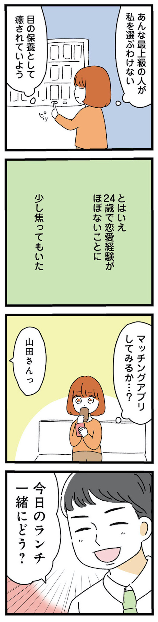 高校生の時、自分が面食いだと気がつく。24歳にして‟恋愛偏差値が低い”私の悩みは?【憧れのイケメン先輩が、束縛クズ男に豹変しました #3】 2025.09.20 LIFE 束縛マンガ憧れのイケメン先輩が、束縛クズ男に豹変しました 試し読みマンガ試し読み男女関係試し読み ▶Renta!『憧れのイケメン先輩が、束縛クズ男に豹変しました』 ▶30日間無料▶ Amazonの読み放題をチェック! 【99円で2カ月間】 Audible が無制限で聴ける! ▶楽天KOBO 初回購入金額のポイント最大70倍! スポンサーリンク 次のページへ >> 1 2 3 【注目の記事】 1番対策が難しかった…!頬のたるみやほうれい線につながるNG食事習慣最後のひとつ 冬の寒さに負けない!そろそろ準備したい中綿アウター×【ユニクロ】バズりデニムの着こなし【40代の毎日コーデ】 【ユニクロ】カシミヤタッチニットで魅せる!旬のブラウンを効かせた洗練肩掛けテク【40代の毎日コーデ】 東大生が注意喚起!「鵜呑みにしてはいけない」SNSで「でたらめの受験情報」を発信する人の特徴とは 「東大受験が簡単!?」な難関私立高出身者。天才たちの受験勉強、その驚きの実態とは この記事は OTONA SALONE1 スポンサーリンク スポンサーリンク 【人気の関連記事】 40代。もう私、いつ死んだっていい気がするけど | あした死ぬには、#1 突然の病気。更年期障害。取れない疲労、お金の不安、これからの人生の迷い……。40代がぶち当たる「壁」をあまりにもリアルに描き出し、熱く静かな共感をさらった雁須磨子さ… 人前では「完璧な夫婦」を演じる夫。普段は私を無視してるって、誰も知らない【女40代はおそろしい#11】 40歳・フリーデザイナーの丸山ふさ子。 夫との攻防戦の末、「共働きだけど夫のほうが家事育児多め」という関係にやっとたどり着く。バリキャリ会社員のまい、起業家のかお… 年齢、たまに忘れてない?アラフォーあるあるが「共感しかない」と話題 「最近、若い頃と比べて何かが違う……」そんなモヤモヤを抱えているアラフォーのみなさん、必見!イラストレーターのRingoman(@ringo_fashion)さんがインスタグラムに投稿…