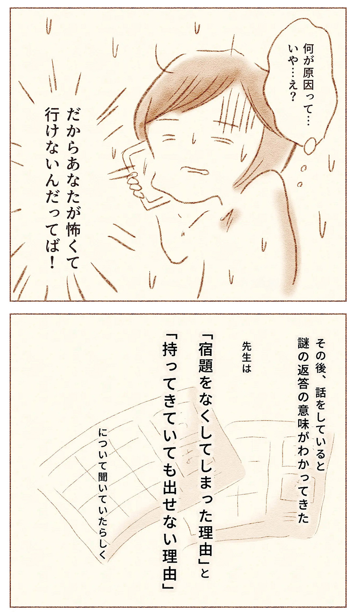 「先生が怖くて学校に行けない」勇気を振り絞って母が担任の先生に伝えると、謎の返答をされて困惑…【娘が小1で不登校になりました 先生が怖くて学校に行けない #6】 2025.09.18 LIFE マンガ試し読み不登校マンガ試し読み娘が小1で不登校になりました 先生が怖くて学校に行けない 試し読み ▶Renta!『娘が小1で不登校になりました 先生が怖くて学校に行けない』 ▶30日間無料▶ Amazonの読み放題をチェック! 【99円で2カ月間】 Audible が無制限で聴ける! ▶楽天KOBO 初回購入金額のポイント最大70倍! スポンサーリンク 次のページへ >> 1 2 3 4 【注目の記事】 1番対策が難しかった…!頬のたるみやほうれい線につながるNG食事習慣最後のひとつ 冬の寒さに負けない!そろそろ準備したい中綿アウター×【ユニクロ】バズりデニムの着こなし【40代の毎日コーデ】 【ユニクロ】カシミヤタッチニットで魅せる!旬のブラウンを効かせた洗練肩掛けテク【40代の毎日コーデ】 東大生が注意喚起!「鵜呑みにしてはいけない」SNSで「でたらめの受験情報」を発信する人の特徴とは 「東大受験が簡単!?」な難関私立高出身者。天才たちの受験勉強、その驚きの実態とは この記事は OTONA SALONE1 スポンサーリンク スポンサーリンク 【人気の関連記事】 40代。もう私、いつ死んだっていい気がするけど | あした死ぬには、#1 突然の病気。更年期障害。取れない疲労、お金の不安、これからの人生の迷い……。40代がぶち当たる「壁」をあまりにもリアルに描き出し、熱く静かな共感をさらった雁須磨子さ… 人前では「完璧な夫婦」を演じる夫。普段は私を無視してるって、誰も知らない【女40代はおそろしい#11】 40歳・フリーデザイナーの丸山ふさ子。 夫との攻防戦の末、「共働きだけど夫のほうが家事育児多め」という関係にやっとたどり着く。バリキャリ会社員のまい、起業家のかお… 年齢、たまに忘れてない?アラフォーあるあるが「共感しかない」と話題 「最近、若い頃と比べて何かが違う……」そんなモヤモヤを抱えているアラフォーのみなさん、必見!イラストレーターのRingoman(@ringo_fashion)さんがインスタグラムに投稿…