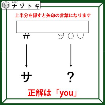 よって、問題の方も同じように上半分を隠すとアルファベットがあらわれます。正解は「you」でした。
