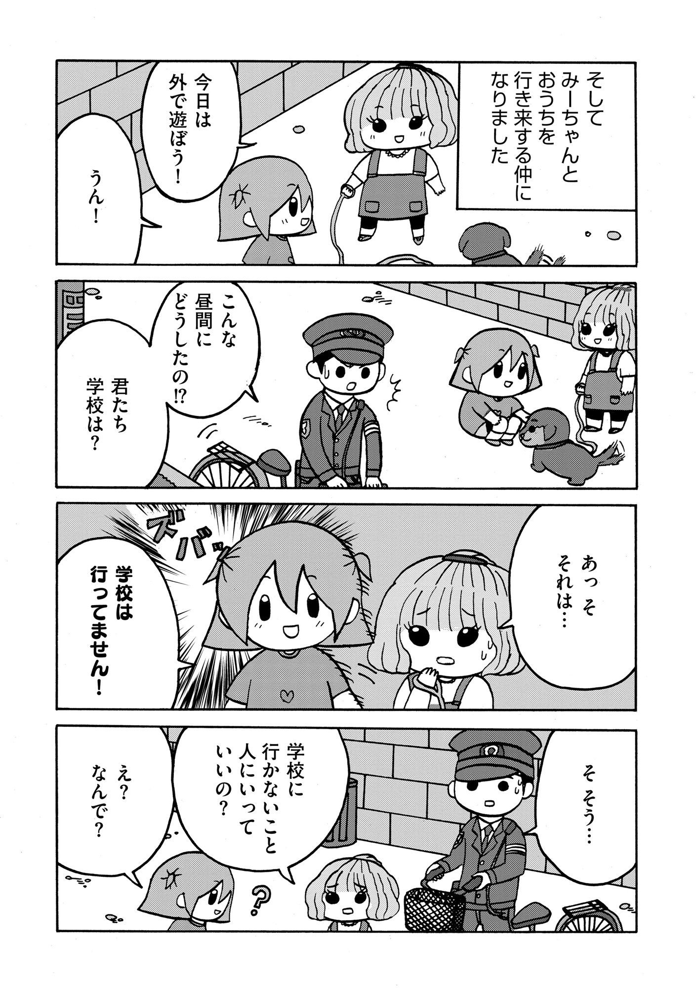 不登校の親の会で友だちができた。2人で外で遊んでいるとお巡りさんに声を掛けられ…【幼稚園から不登校の私 #16】