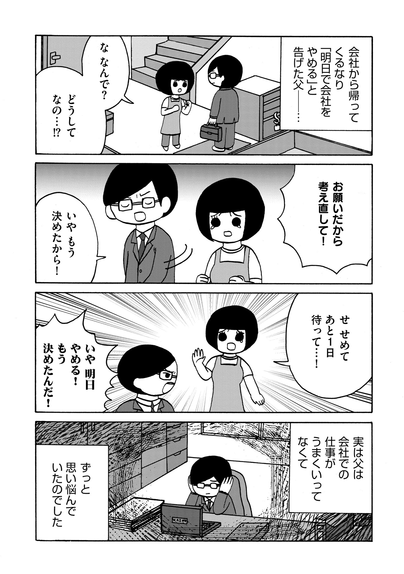 突然「明日、会社を辞める」と言い出した父。自分は転職、母にはパートに行けと命令【幼稚園から不登校の私 #19】 2025.09.12 LIFE 幼稚園から不登校の私が 試し読み試し読みマンガ試し読みマンガ 幼稚園を中退し、小学校・中学校・高校に行かなかったものの、一念発起して大検を受検し、大学に進学するまでを「不登校児本人」が描くコミックエッセイ。 不登校児の日常生活とは?親の心境とは?学校に行かなくて良かったこと、悪かったことは…? 不登校児から見たさまざまな事象をご紹介! ※本記事はひろさきりこ著の電子書籍『幼稚園から不登校の私が、大学生になるまで』から抜粋・編集しました。 ▶Renta!『幼稚園から不登校の私が大学生になるまで』 ▶30日間無料▶ Amazonの読み放題をチェック! 【99円で2カ月間】 Audible が無制限で聴ける! ▶楽天KOBO 初回購入金額のポイント最大70倍! スポンサーリンク 続きを読む 次のページへ >> 1 2 3 【注目の記事】 「優しかったころの夫に戻って欲しい」その“希望”にすがり続けた妻が、裏切られ、心を壊していくまで 1番対策が難しかった…!頬のたるみやほうれい線につながるNG食事習慣最後のひとつ 冬の寒さに負けない!そろそろ準備したい中綿アウター×【ユニクロ】バズりデニムの着こなし【40代の毎日コーデ】 【ユニクロ】カシミヤタッチニットで魅せる!旬のブラウンを効かせた洗練肩掛けテク【40代の毎日コーデ】 東大生が注意喚起!「鵜呑みにしてはいけない」SNSで「でたらめの受験情報」を発信する人の特徴とは この記事は OTONA SALONE1 スポンサーリンク スポンサーリンク 【人気の関連記事】 40代。もう私、いつ死んだっていい気がするけど | あした死ぬには、#1 突然の病気。更年期障害。取れない疲労、お金の不安、これからの人生の迷い……。40代がぶち当たる「壁」をあまりにもリアルに描き出し、熱く静かな共感をさらった雁須磨子さ… 人前では「完璧な夫婦」を演じる夫。普段は私を無視してるって、誰も知らない【女40代はおそろしい#11】 40歳・フリーデザイナーの丸山ふさ子。 夫との攻防戦の末、「共働きだけど夫のほうが家事育児多め」という関係にやっとたどり着く。バリキャリ会社員のまい、起業家のかお… 年齢、たまに忘れてない?アラフォーあるあるが「共感しかない」と話題 「最近、若い頃と比べて何かが違う……」そんなモヤモヤを抱えているアラフォーのみなさん、必見!イラストレーターのRingoman(@ringo_fashion)さんがインスタグラムに投稿…