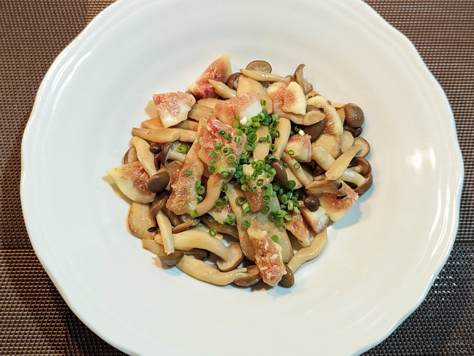 これらの“脾の機能にうれしい食材”を使ったおススメレシピの1つ目は「キノコといちじくのバターしょうゆ炒め」です。お盆を過ぎてからスーパーで目にすることが増えてきた“いちじく”。秋に旬を迎えるキノコと合せてレシピにしてみました。