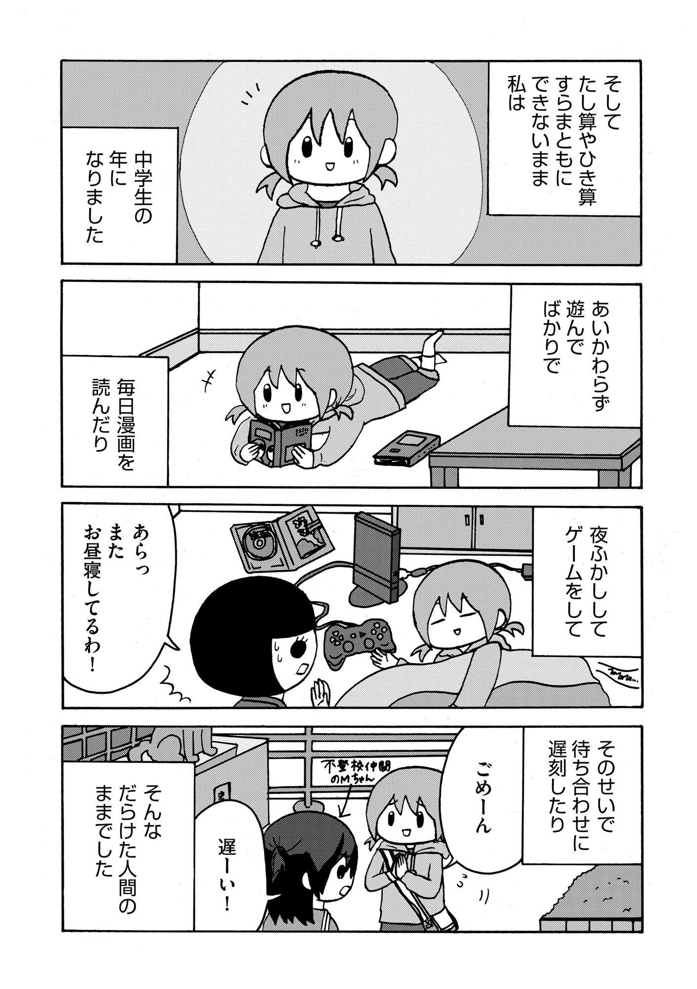中学生が学校に行っていないことで損した、意外すぎることとは【幼稚園から不登校の私 #32】 2025.09.18 LIFE 幼稚園から不登校の私が 試し読み試し読みマンガマンガ試し読み ▶Renta!『幼稚園から不登校の私が大学生になるまで』 ▶30日間無料▶ Amazonの読み放題をチェック! 【99円で2カ月間】 Audible が無制限で聴ける! ▶楽天KOBO 初回購入金額のポイント最大70倍! スポンサーリンク 次のページへ >> 1 2 3 【注目の記事】 つい毎日やりがち。肌年齢マイナス14歳美容のプロがやめてよかった、睡眠の質を落とす夜の習慣2つ 48歳、高コスパコートをマネキン買いしたばかりのPTA中受ママが「羽織るだけでコーデ偏差値が爆上がりする」アイテムに出会ってしまい 「優しかったころの夫に戻って欲しい」その“希望”にすがり続けた妻が、裏切られ、心を壊していくまで 今シーズン着こなしたい【ユニクロ】の優秀スウェットパンツ。大人かっこいい着こなしのお手本スタイル【40代の毎日コーデ】 1番対策が難しかった…!頬のたるみやほうれい線につながるNG食事習慣最後のひとつ この記事は OTONA SALONE1 スポンサーリンク スポンサーリンク 【人気の関連記事】 40代。もう私、いつ死んだっていい気がするけど | あした死ぬには、#1 突然の病気。更年期障害。取れない疲労、お金の不安、これからの人生の迷い……。40代がぶち当たる「壁」をあまりにもリアルに描き出し、熱く静かな共感をさらった雁須磨子さ… 人前では「完璧な夫婦」を演じる夫。普段は私を無視してるって、誰も知らない【女40代はおそろしい#11】 40歳・フリーデザイナーの丸山ふさ子。 夫との攻防戦の末、「共働きだけど夫のほうが家事育児多め」という関係にやっとたどり着く。バリキャリ会社員のまい、起業家のかお… 年齢、たまに忘れてない?アラフォーあるあるが「共感しかない」と話題 「最近、若い頃と比べて何かが違う……」そんなモヤモヤを抱えているアラフォーのみなさん、必見!イラストレーターのRingoman(@ringo_fashion)さんがインスタグラムに投稿…