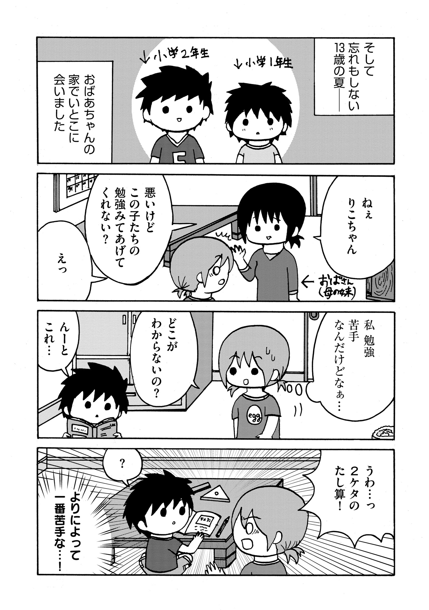 13歳、小1・小2のいとこの勉強をみるも、2ケタの足し算がまったくわからない!【幼稚園から不登校の私 #33】 2025.09.19 LIFE マンガ試し読みマンガ幼稚園から不登校の私が 試し読み試し読み 幼稚園を中退し、小学校・中学校・高校に行かなかったものの、一念発起して大検を受検し、大学に進学するまでを「不登校児本人」が描くコミックエッセイ。 不登校児の日常生活とは?親の心境とは?学校に行かなくて良かったこと、悪かったことは…? 不登校児から見たさまざまな事象をご紹介! ※本記事はひろさきりこ著の電子書籍『幼稚園から不登校の私が、大学生になるまで』から抜粋・編集しました。 ▶Renta!『幼稚園から不登校の私が大学生になるまで』 ▶30日間無料▶ Amazonの読み放題をチェック! 【99円で2カ月間】 Audible が無制限で聴ける! ▶楽天KOBO 初回購入金額のポイント最大70倍! スポンサーリンク 続きを読む 次のページへ >> 1 2 3 【注目の記事】 つい毎日やりがち。肌年齢マイナス14歳美容のプロがやめてよかった、睡眠の質を落とす夜の習慣2つ 48歳、高コスパコートをマネキン買いしたばかりのPTA中受ママが「羽織るだけでコーデ偏差値が爆上がりする」アイテムに出会ってしまい 「優しかったころの夫に戻って欲しい」その“希望”にすがり続けた妻が、裏切られ、心を壊していくまで 今シーズン着こなしたい【ユニクロ】の優秀スウェットパンツ。大人かっこいい着こなしのお手本スタイル【40代の毎日コーデ】 1番対策が難しかった…!頬のたるみやほうれい線につながるNG食事習慣最後のひとつ この記事は OTONA SALONE1 スポンサーリンク スポンサーリンク 【人気の関連記事】 40代。もう私、いつ死んだっていい気がするけど | あした死ぬには、#1 突然の病気。更年期障害。取れない疲労、お金の不安、これからの人生の迷い……。40代がぶち当たる「壁」をあまりにもリアルに描き出し、熱く静かな共感をさらった雁須磨子さ… 人前では「完璧な夫婦」を演じる夫。普段は私を無視してるって、誰も知らない【女40代はおそろしい#11】 40歳・フリーデザイナーの丸山ふさ子。 夫との攻防戦の末、「共働きだけど夫のほうが家事育児多め」という関係にやっとたどり着く。バリキャリ会社員のまい、起業家のかお… 年齢、たまに忘れてない?アラフォーあるあるが「共感しかない」と話題 「最近、若い頃と比べて何かが違う……」そんなモヤモヤを抱えているアラフォーのみなさん、必見!イラストレーターのRingoman(@ringo_fashion)さんがインスタグラムに投稿…