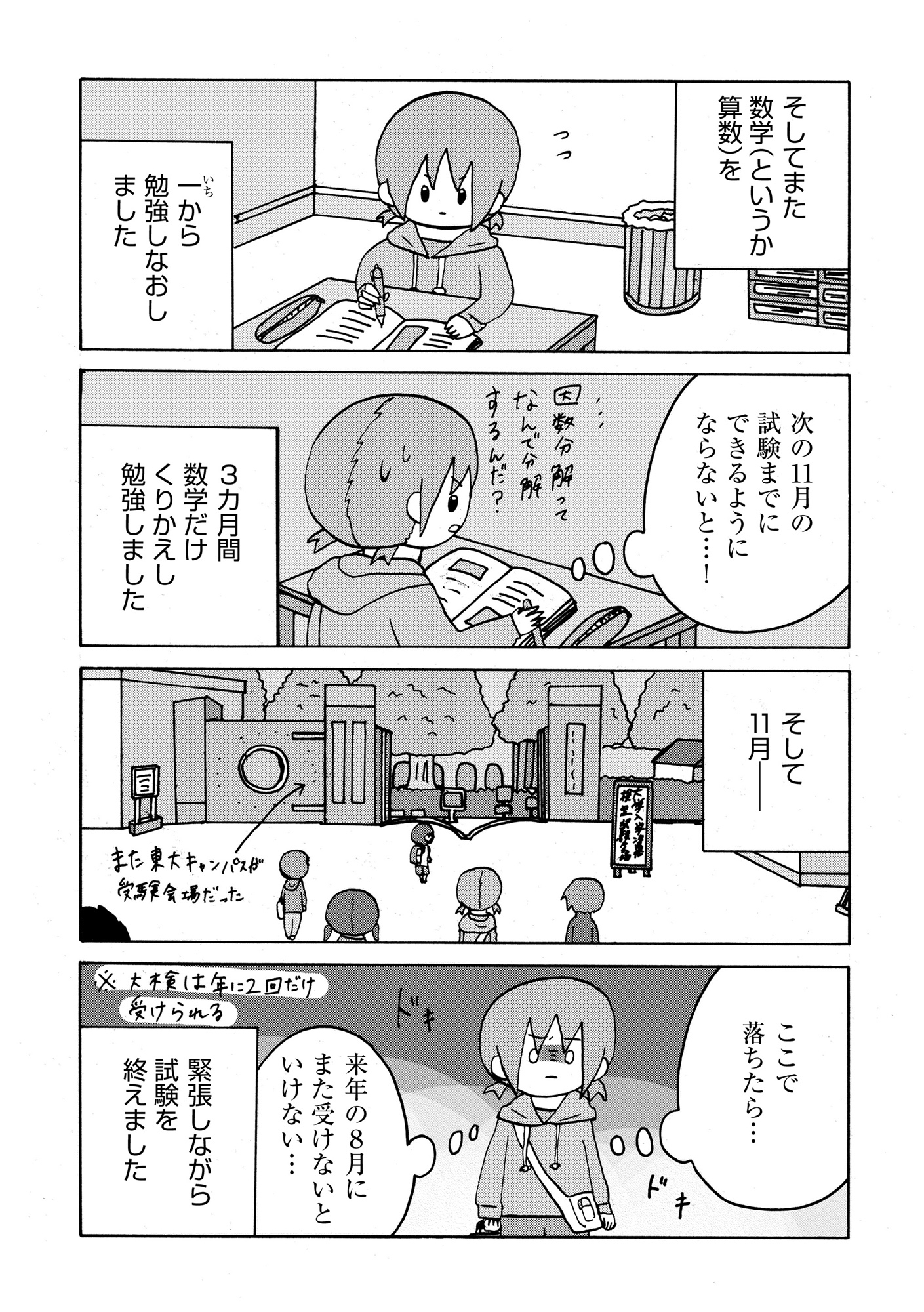 大検10科目中、数学だけ落ちる。猛勉強の末、2度目の大検へ【幼稚園から不登校の私 #46】 2025.09.25 LIFE マンガ試し読みマンガ幼稚園から不登校の私が 試し読み試し読み ▶Renta!『幼稚園から不登校の私が大学生になるまで』 ▶30日間無料▶ Amazonの読み放題をチェック! 【99円で2カ月間】 Audible が無制限で聴ける! ▶楽天KOBO 初回購入金額のポイント最大70倍! スポンサーリンク 次のページへ >> 1 2 3 【注目の記事】 1番対策が難しかった…!頬のたるみやほうれい線につながるNG食事習慣最後のひとつ 冬の寒さに負けない!そろそろ準備したい中綿アウター×【ユニクロ】バズりデニムの着こなし【40代の毎日コーデ】 【ユニクロ】カシミヤタッチニットで魅せる!旬のブラウンを効かせた洗練肩掛けテク【40代の毎日コーデ】 東大生が注意喚起!「鵜呑みにしてはいけない」SNSで「でたらめの受験情報」を発信する人の特徴とは 「東大受験が簡単!?」な難関私立高出身者。天才たちの受験勉強、その驚きの実態とは この記事は OTONA SALONE1 スポンサーリンク スポンサーリンク 【人気の関連記事】 40代。もう私、いつ死んだっていい気がするけど | あした死ぬには、#1 突然の病気。更年期障害。取れない疲労、お金の不安、これからの人生の迷い……。40代がぶち当たる「壁」をあまりにもリアルに描き出し、熱く静かな共感をさらった雁須磨子さ… 人前では「完璧な夫婦」を演じる夫。普段は私を無視してるって、誰も知らない【女40代はおそろしい#11】 40歳・フリーデザイナーの丸山ふさ子。 夫との攻防戦の末、「共働きだけど夫のほうが家事育児多め」という関係にやっとたどり着く。バリキャリ会社員のまい、起業家のかお… 年齢、たまに忘れてない?アラフォーあるあるが「共感しかない」と話題 「最近、若い頃と比べて何かが違う……」そんなモヤモヤを抱えているアラフォーのみなさん、必見!イラストレーターのRingoman(@ringo_fashion)さんがインスタグラムに投稿…