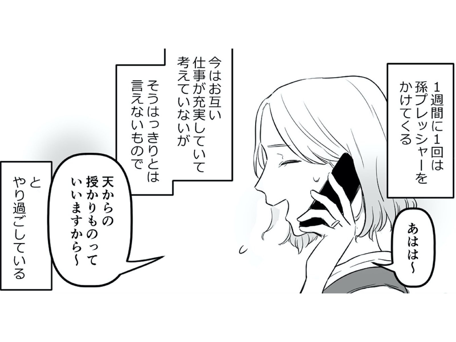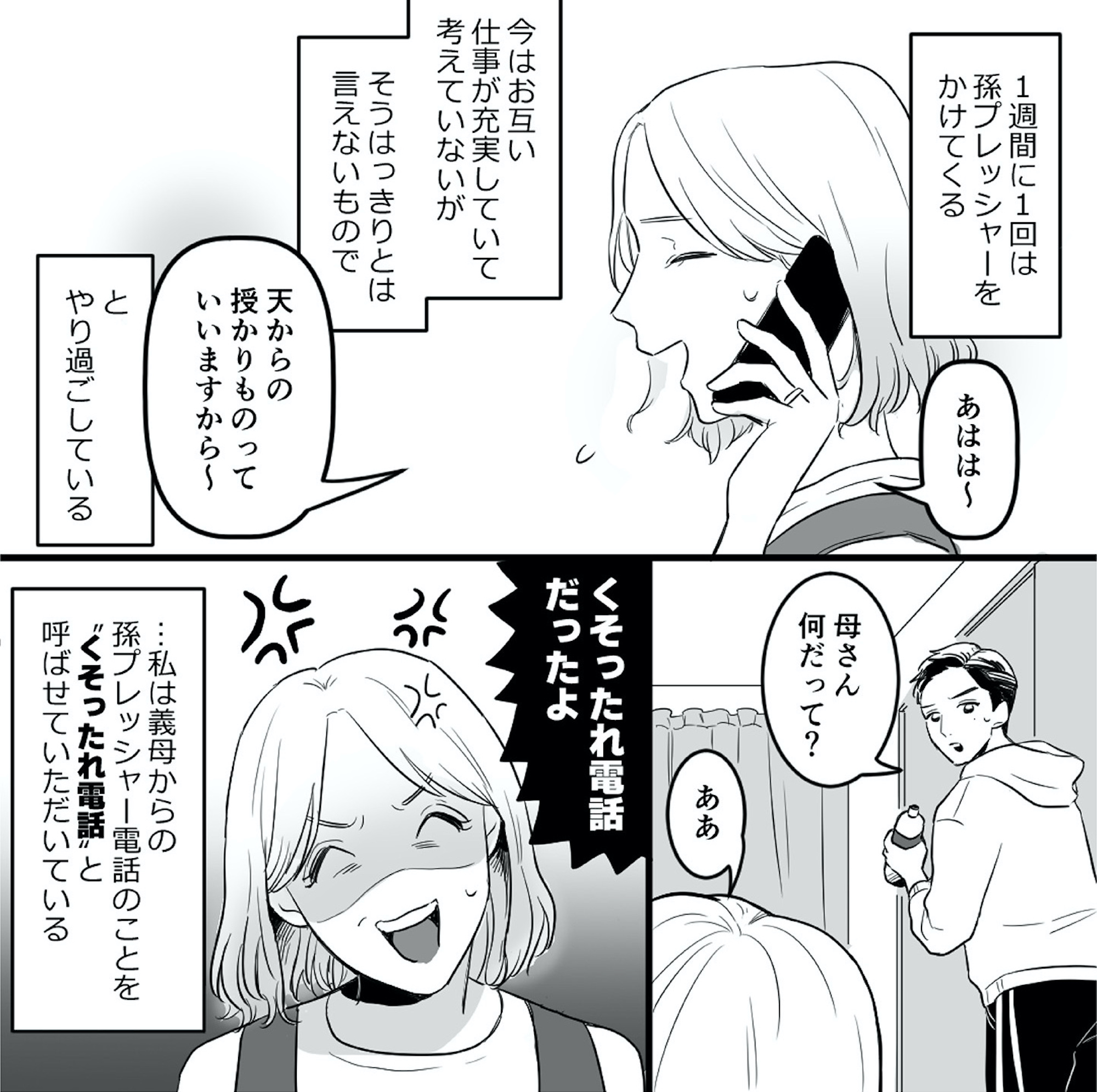 「孫の顔はいつ見られるかしらねぇ」週に1回、義母からの“孫プレッシャー”電話が! 夫も適当な対応しかしてくれず…【金曜に、夫を破滅させます #2】 2025.09.25 LOVE 金曜に、夫を破滅させます ずっと幸せだと思ってた 試し読みマンガマンガ試し読み試し読み夫婦関係 夫の拓也と結婚して2年目の美咲。共働きなのに家事は全て私任せで、義母からは執拗な“孫プレッシャー”をかけられている。 ある日、夫がずっとスマホを手放さないことが気になり、寝ている隙に中身を覗くと、怪しい女とのDMのやりとりを見つけ、夫の不倫が発覚! 「この不倫相手は一体誰なのか?」美咲はあらゆる手を使って、その正体を探ろうとするが…。 ※本記事は原作・されみ、企画・リアコミ、漫画・真青の電子書籍『金曜に、夫を破滅させます ずっと幸せだと思ってた』から一部抜粋・編集しました。 ▶Renta!『金曜に、夫を破滅させます ずっと幸せだと思ってた』 ▶30日間無料▶ Amazonの読み放題をチェック! 【99円で2カ月間】 Audible が無制限で聴ける! ▶楽天KOBO 初回購入金額のポイント最大70倍! スポンサーリンク 続きを読む 次のページへ >> 1 2 3 4 【注目の記事】 1番対策が難しかった…!頬のたるみやほうれい線につながるNG食事習慣最後のひとつ 冬の寒さに負けない!そろそろ準備したい中綿アウター×【ユニクロ】バズりデニムの着こなし【40代の毎日コーデ】 【ユニクロ】カシミヤタッチニットで魅せる!旬のブラウンを効かせた洗練肩掛けテク【40代の毎日コーデ】 東大生が注意喚起!「鵜呑みにしてはいけない」SNSで「でたらめの受験情報」を発信する人の特徴とは 「東大受験が簡単!?」な難関私立高出身者。天才たちの受験勉強、その驚きの実態とは この記事は OTONA SALONE1 スポンサーリンク スポンサーリンク 【人気の関連記事】 【なぜどく#7 45歳・A子さん編】地方は独身男が少ない!40代でやっと気づいたこと 【なぜ彼女は独身なのか?40代独女の本音 ♯7】アラフォー独身のイラストレーターNobbyさんが、絶賛婚活中の編集長・アサミといっしょに、婚活中の独身女性と「私たちはな… 【なぜどく#8】42歳独女が月額10万のセレブ婚活サロンに登録した結果… 【なぜ彼女は独身なの?40代独女の本音 ♯8】アラフォー独身のイラストレーターNobbyさんが、絶賛婚活中の編集長・アサミといっしょに、婚活中の独身女性と「私たちはなぜ… 【なぜどく#13 45歳・ヨーコさん編】バリキャリ女子は、婚活に迷走する? アラフォー独身のイラストレーターNobbyさんが、絶賛婚活中の編集長・アサミといっしょに、婚活中の独身女性と「私たちはなぜ婚活し続けるのか」まったり語り合う会のレポ…